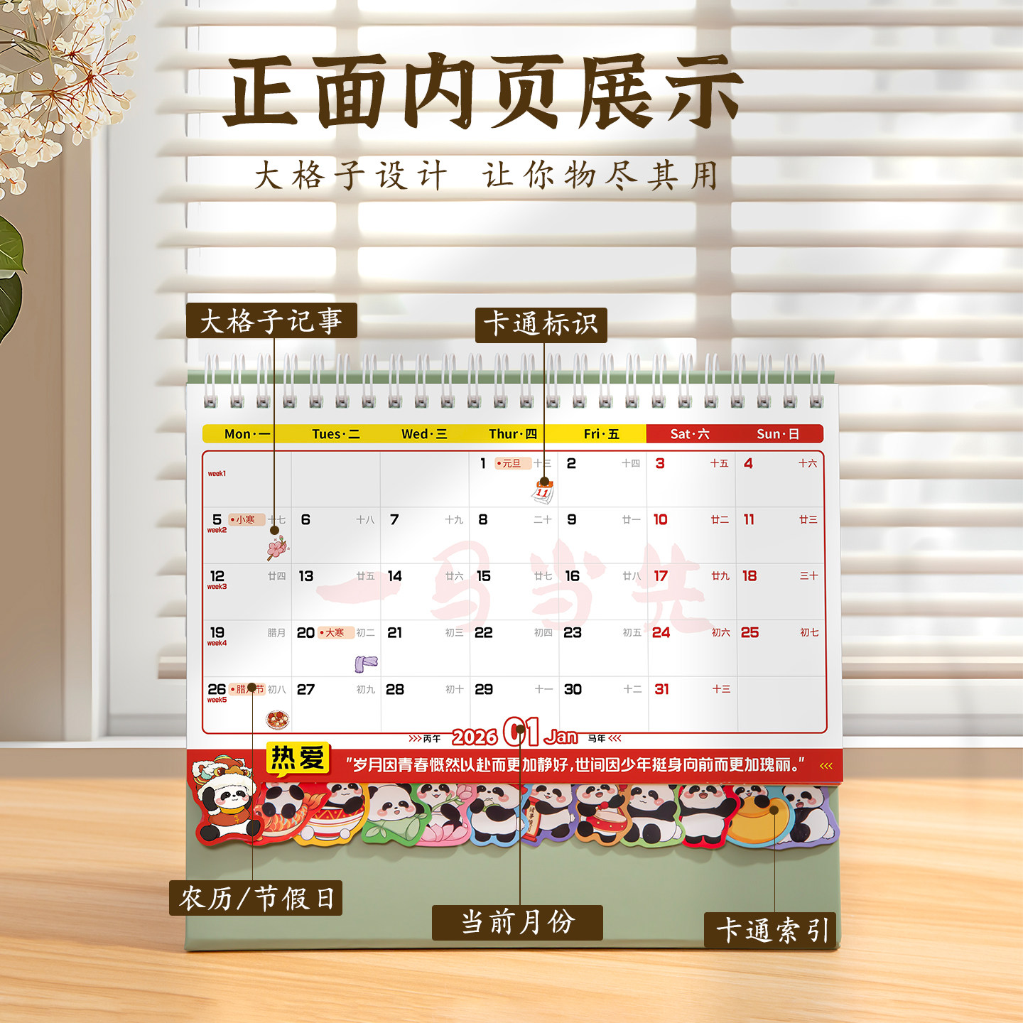 台历2026年新款创意简约办公桌面摆件月历办公室日程计划本高颜值年历马年工作打卡小日历创意大格子台式记事