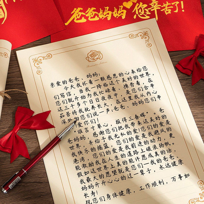 红色感恩信封信纸套装礼盒父亲母亲节礼物亲情家书手写信纸加厚烫金红信封自粘蝴蝶结礼品定制创意贺卡感谢信
