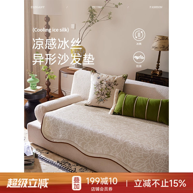 【第3件0元专区】蜡笔派露华牡丹异形沙发垫复古轻奢高级冰丝防滑