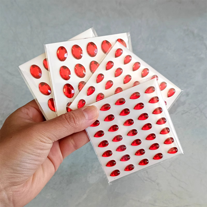 中国红古装眉心贴钻美人痣额头贴贵妃观音新娘脸部椭圆钻贴儿童舞台表演红色圆点贴水滴钻贴汉服古风妆容饰品