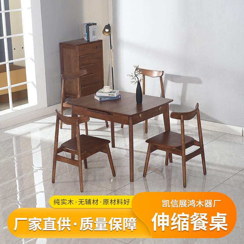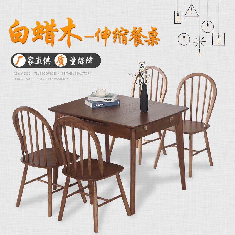 北欧白蜡木伸缩餐桌现代简约实木餐桌椅家用餐厅胡桃色餐桌椅