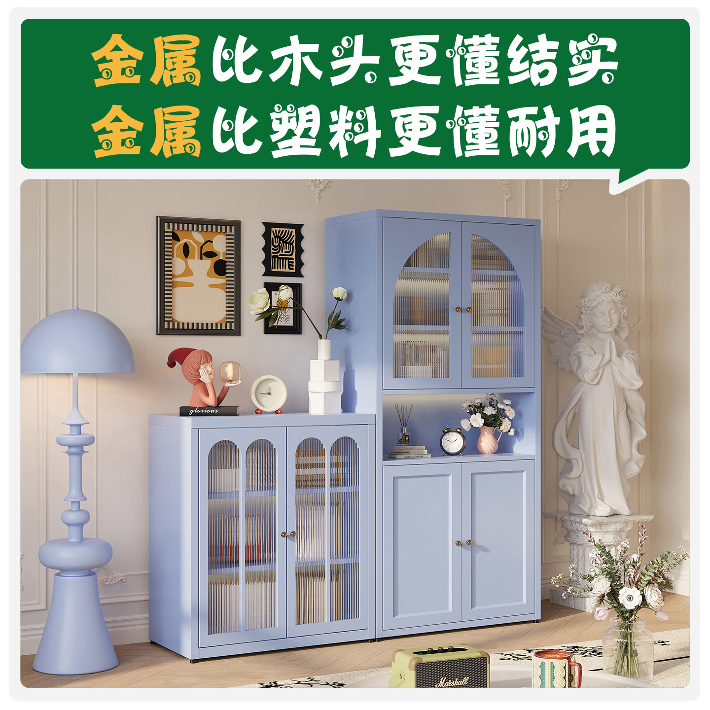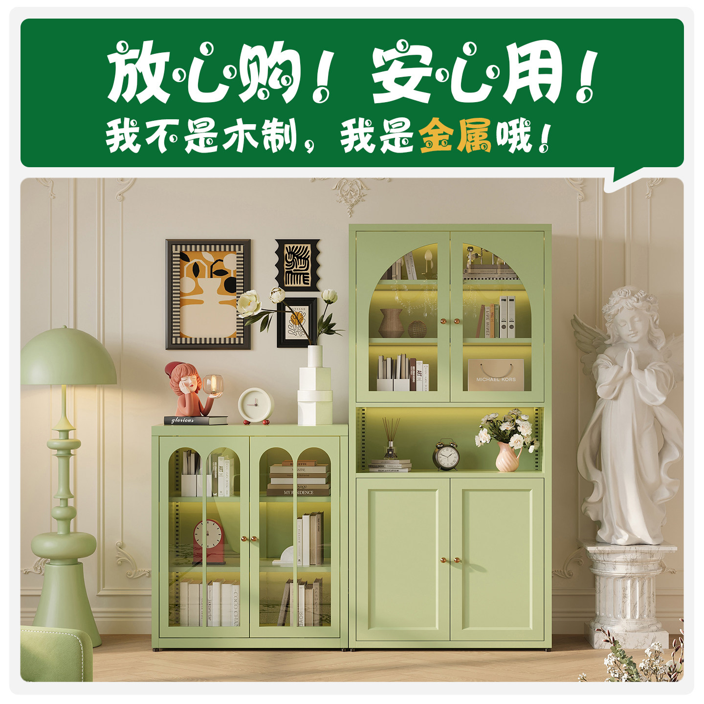 钢制书柜儿童书架落地家用客厅亚克力透明防尘门展示柜储物置物架