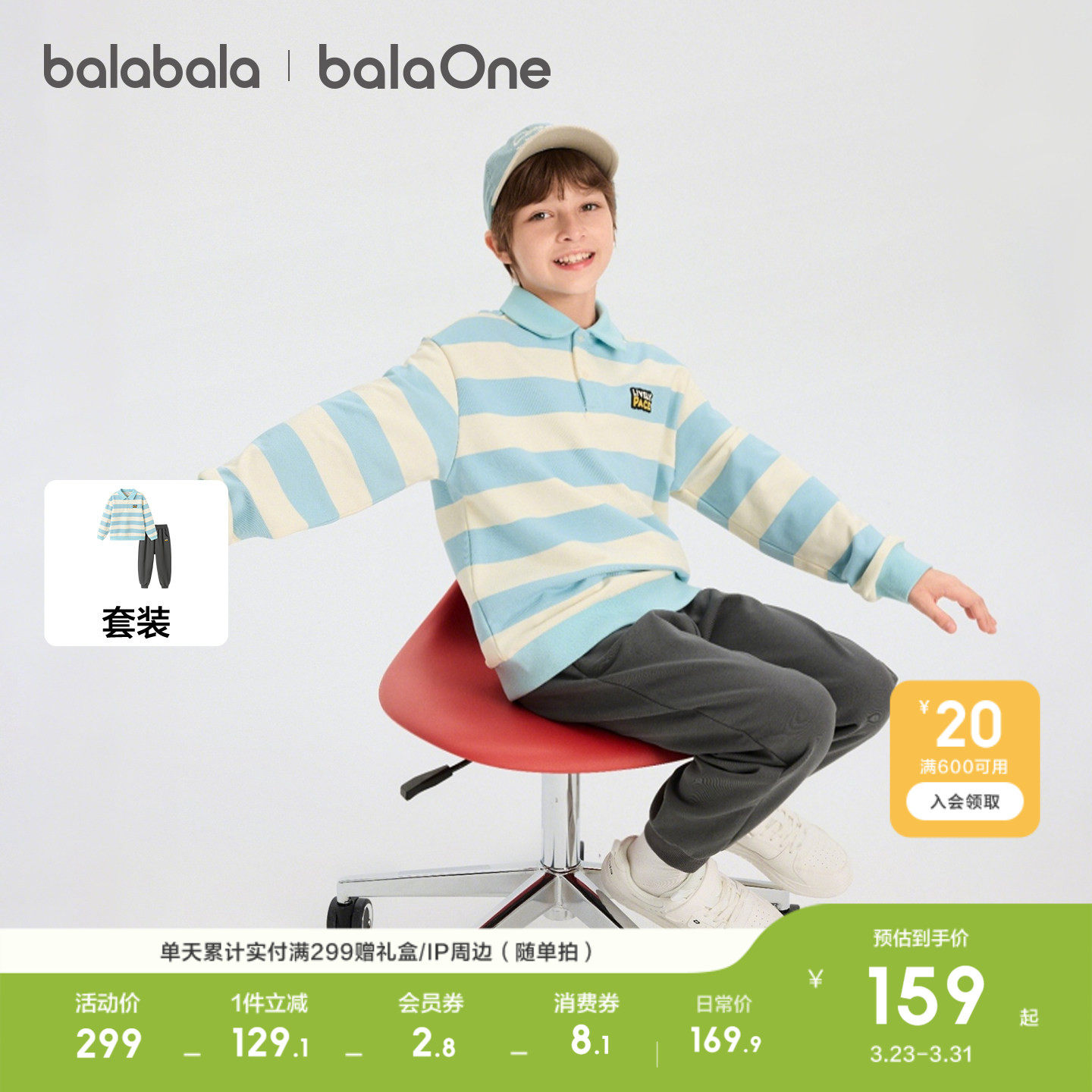 巴拉巴拉童装儿童套装两件套宝宝女童男童2026新款春装亲肤舒适潮
