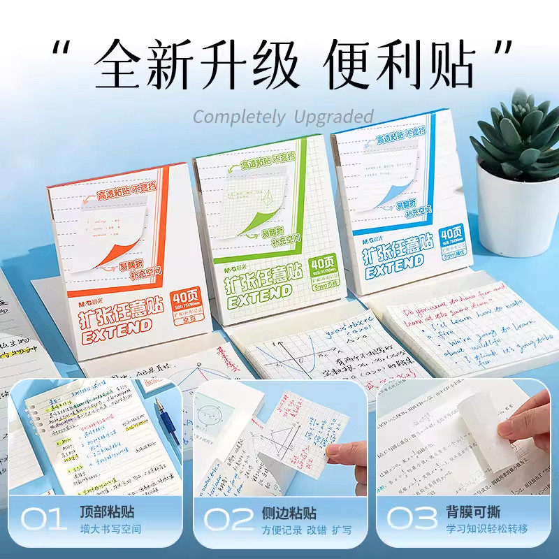 晨光扩张便利贴不遮挡透明可折叠任意贴考研学生用可撕有粘性便签贴纸初高中生记笔记贴订正错题扩展方格横线