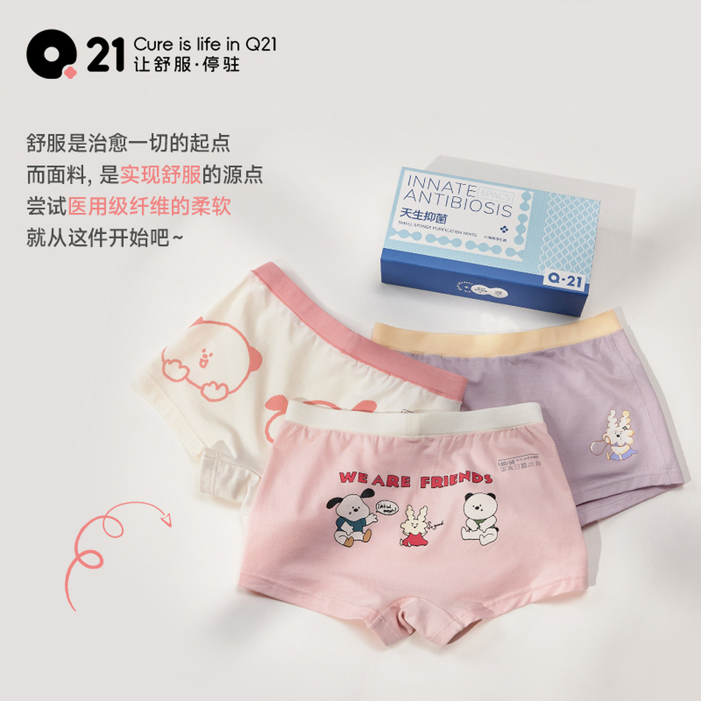 Q21儿童内裤男女童平角裤5A抗菌不夹屁屁四角裤