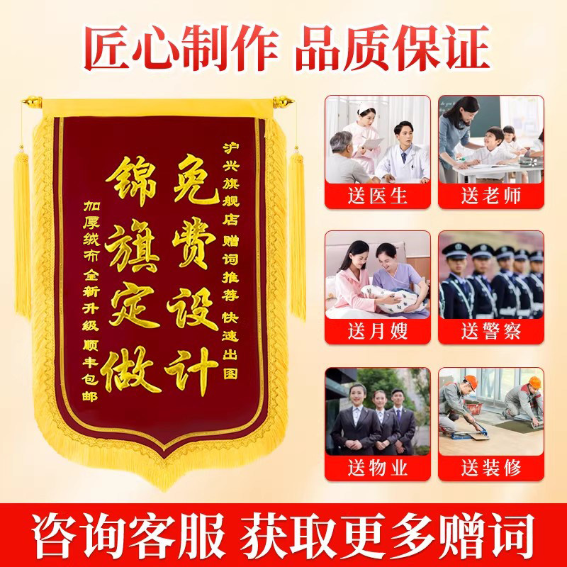 高档锦旗定制定做感谢赠送物业服务保安旌旗订制订做感谢管家送居委会社区房产中介植绒旌旗订做旗帜制作