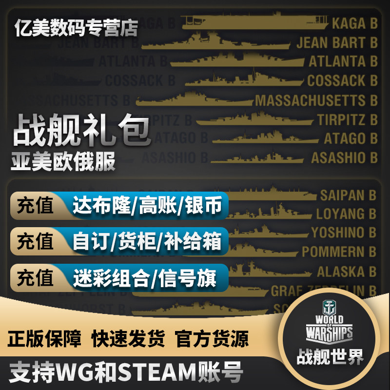 战舰世界 wows WG 直营服 Steam 礼包 舰船 自订 达布隆 加值账号