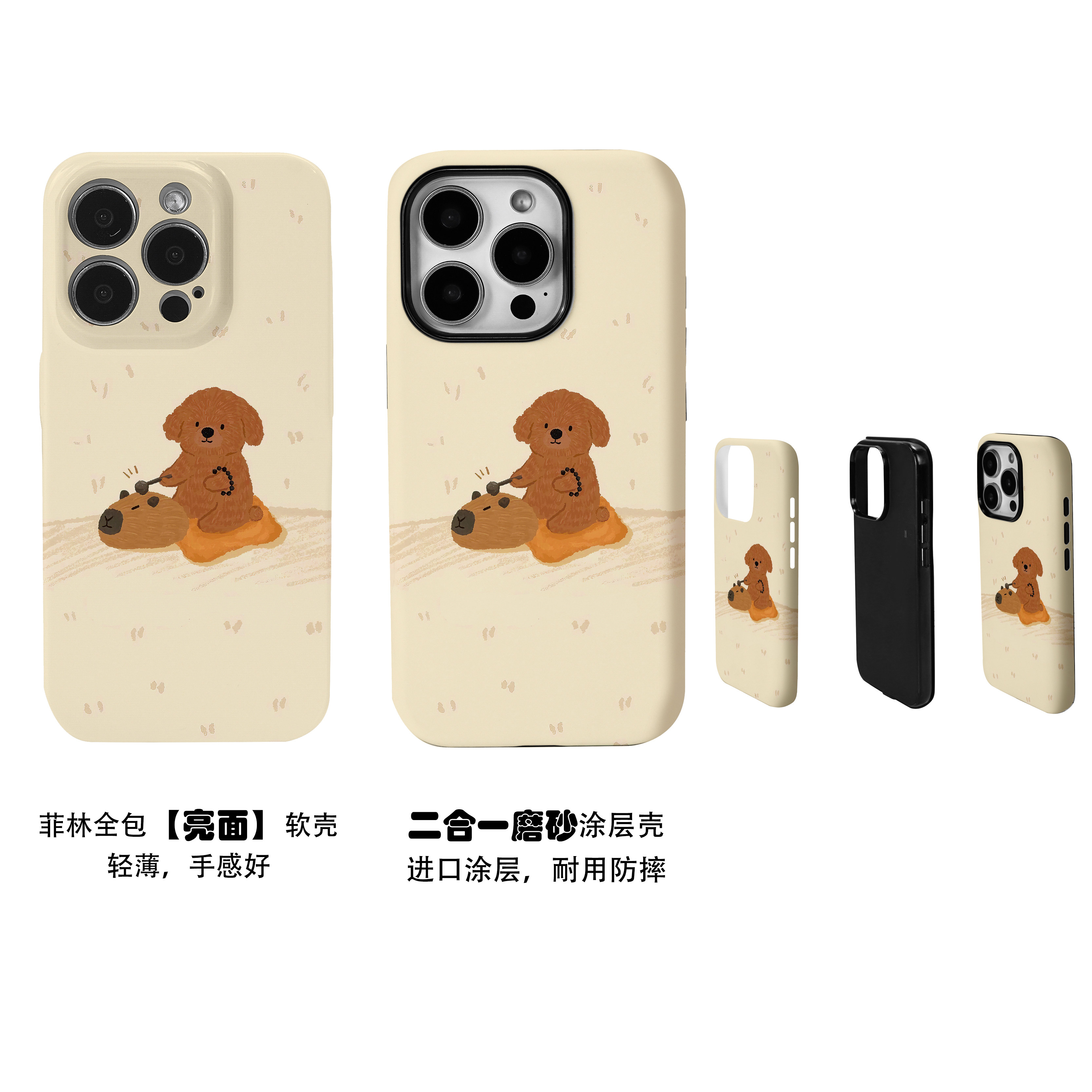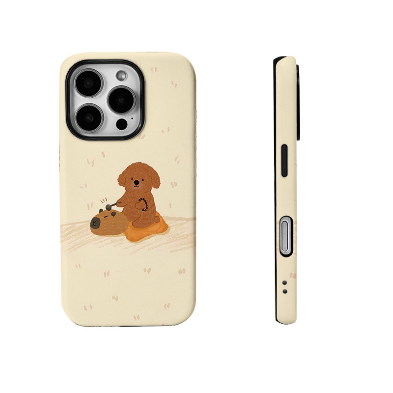可爱狗敲木鱼卡皮巴拉菲林二合一手机壳适用苹果17nova14华为p70mate60小米15opporen14ovivo荣耀300iPhone16