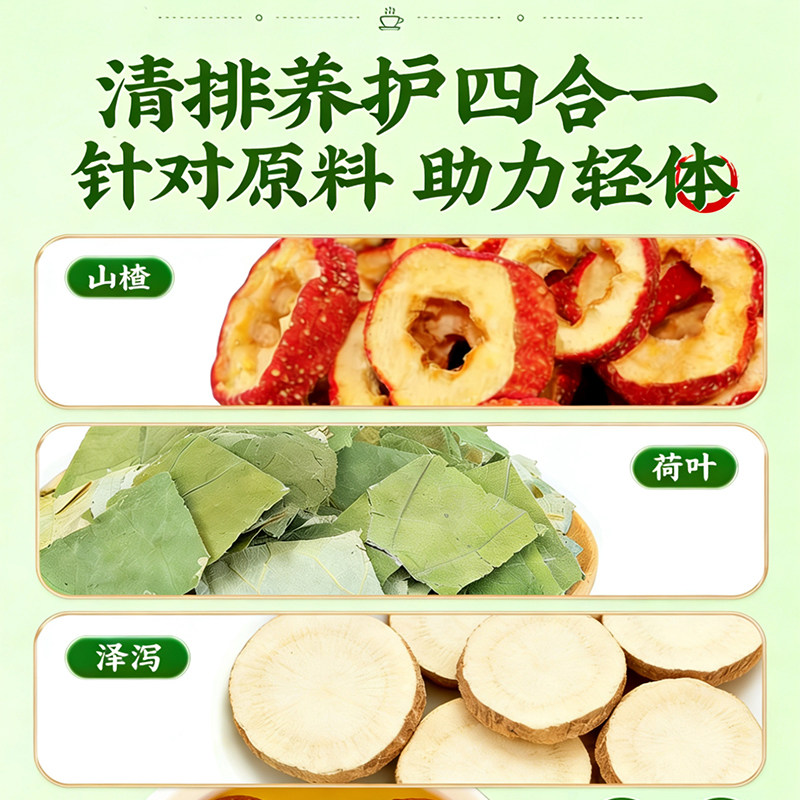荷叶山楂泽泻组合茶泡水喝的功效与正品官方旗舰店刮湿油去胖代谢
