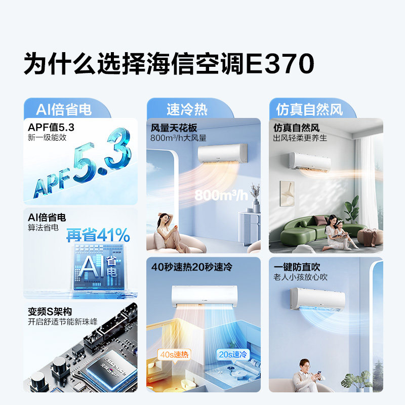 海信大1匹智省电E370空调家用挂机式一级能效卧室以旧换新补贴