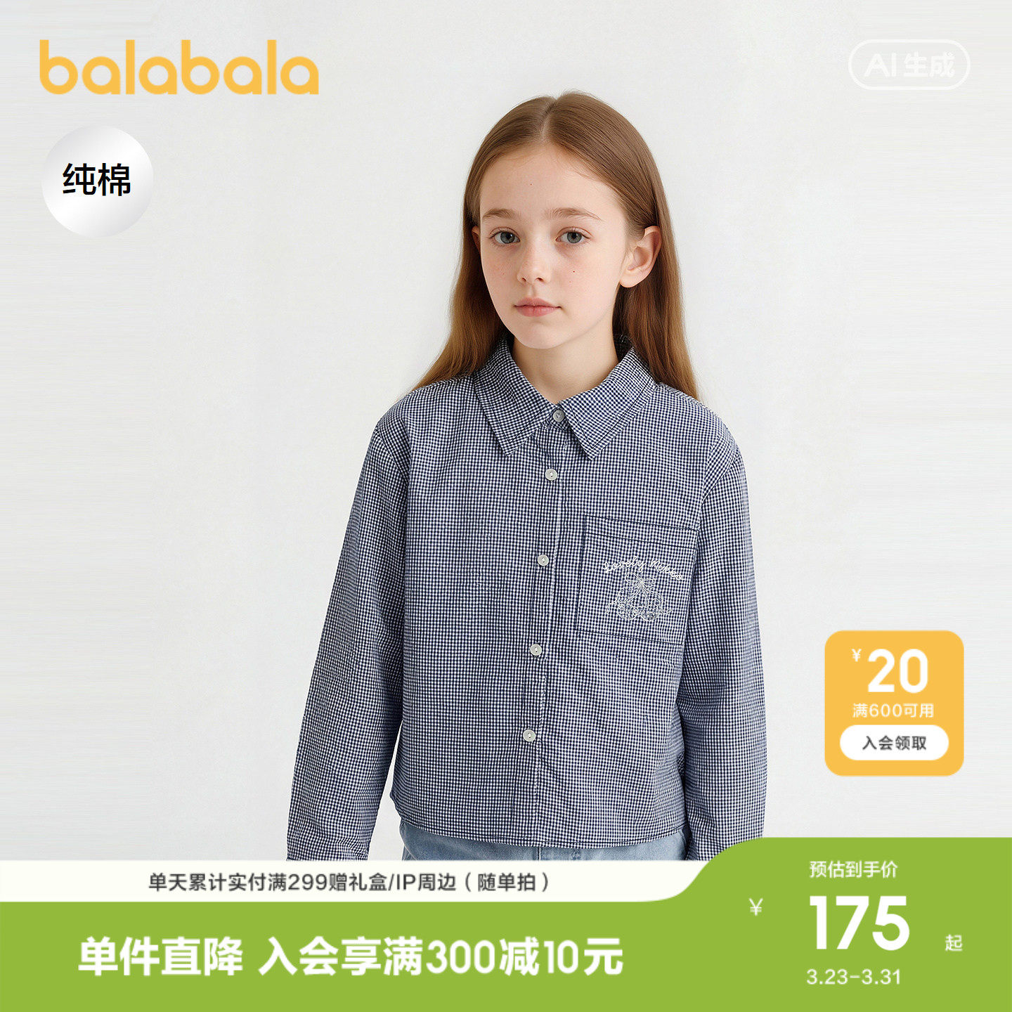 【商场同款】巴拉巴拉童装儿童长袖衬衫女童2026新款春装上衣甜美