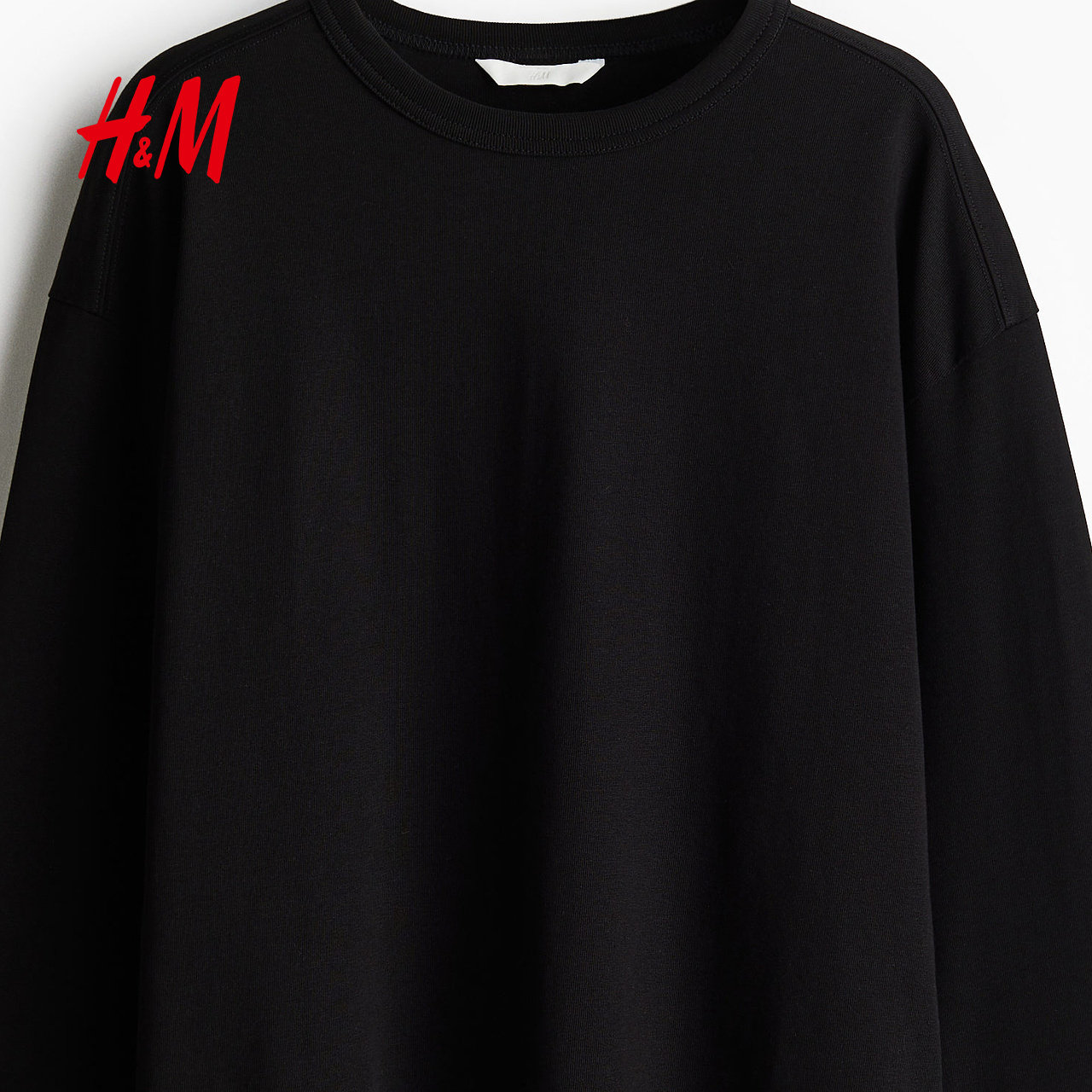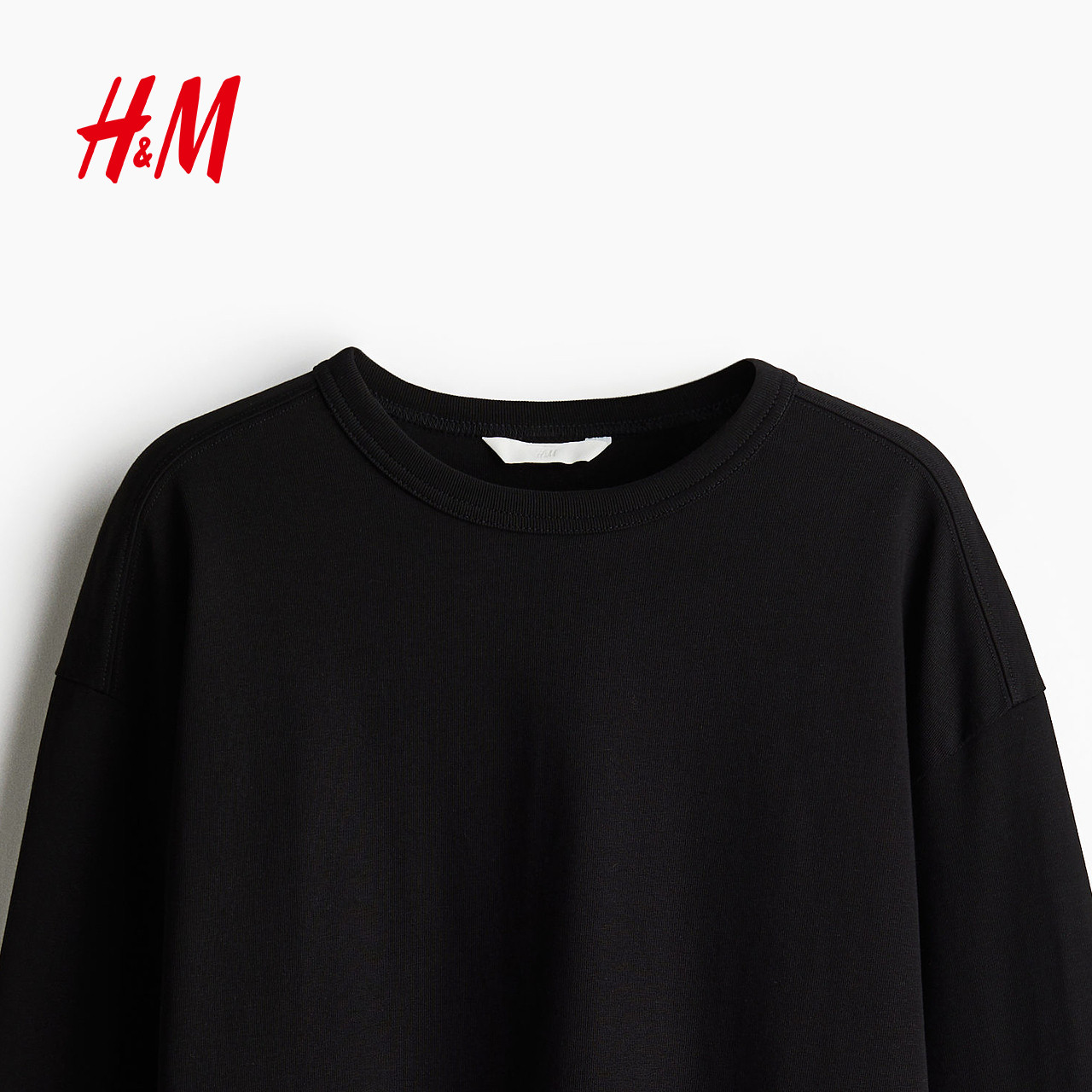 HM女装T恤春季大廓形印花落肩棉质长袖打底衫上衣1243660