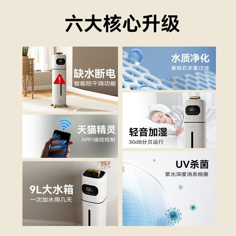 德国落地式双核加湿器家用轻音静卧室孕妇婴儿巨雾大容量除菌净化