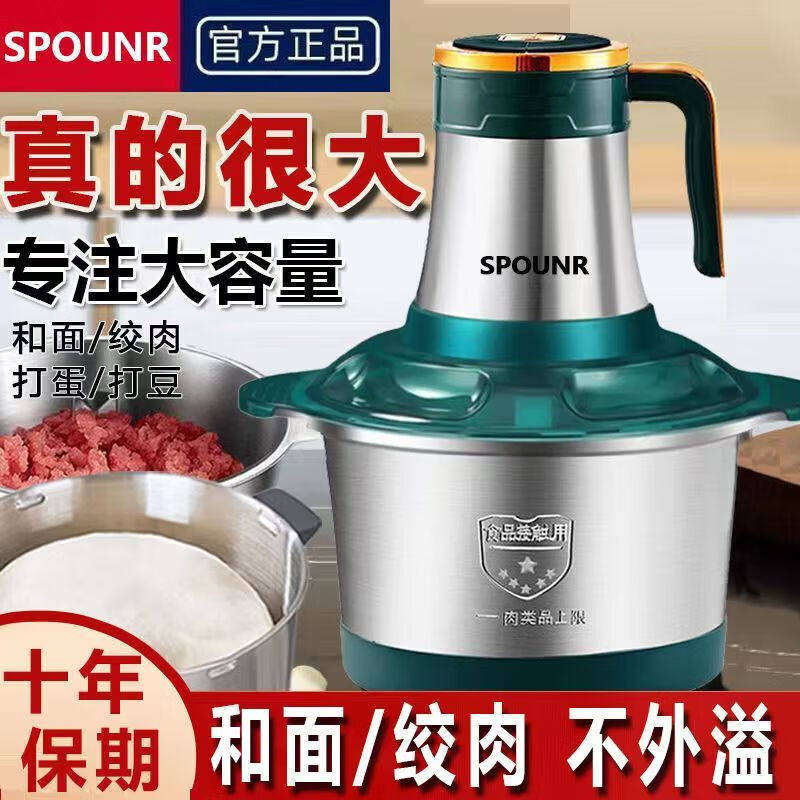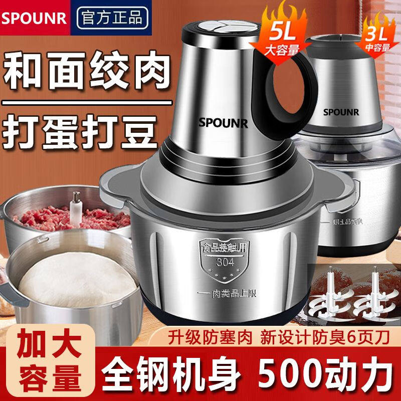 正品新款spounr绞肉机家用电动大功率多功能和面打馅绞菜料理纯铜