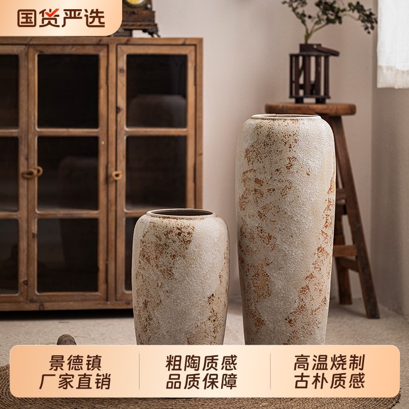 景德镇复古粗陶落地花瓶侘寂风陶瓷摆件家居民宿酒店样板间装饰品