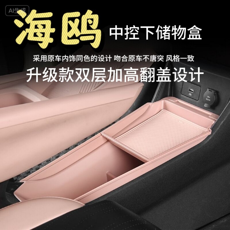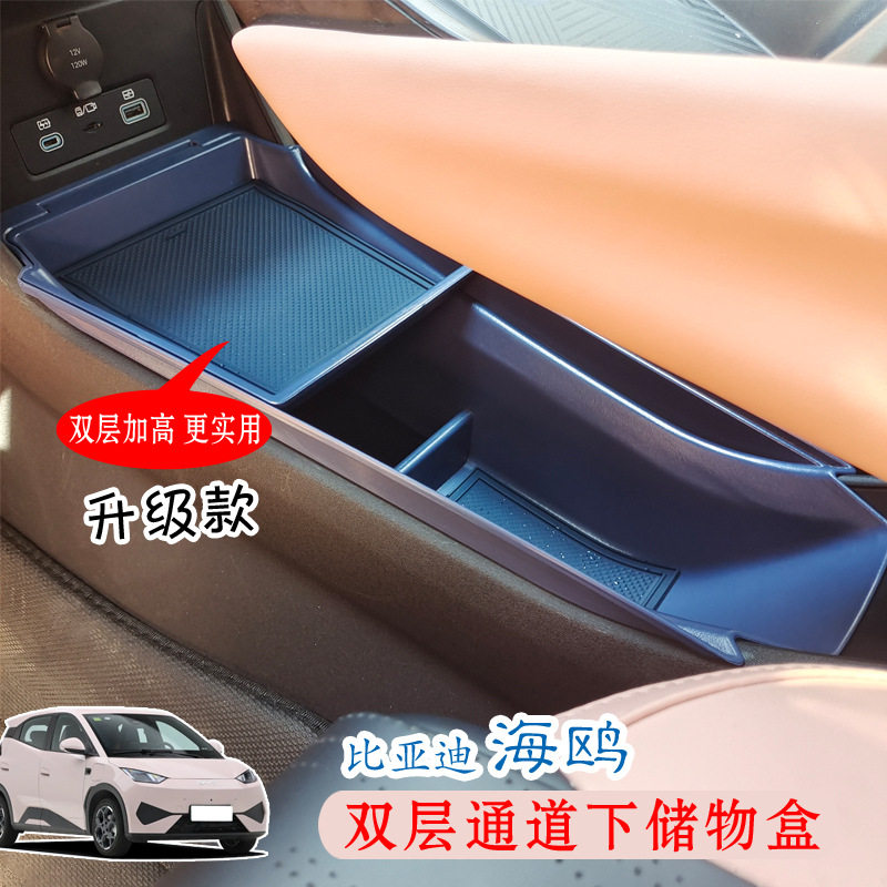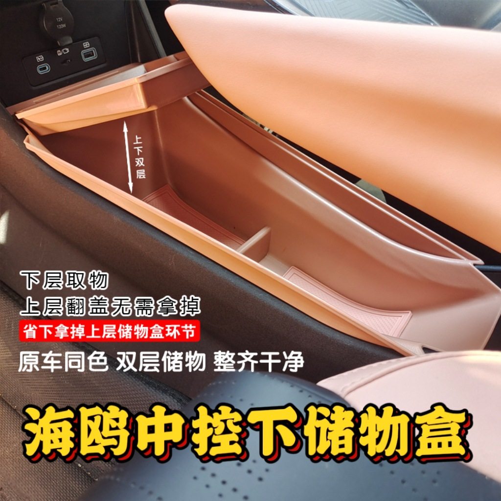 适用比亚迪海鸥车内饰中控下储物盒改装双层加高收纳置物用品配件