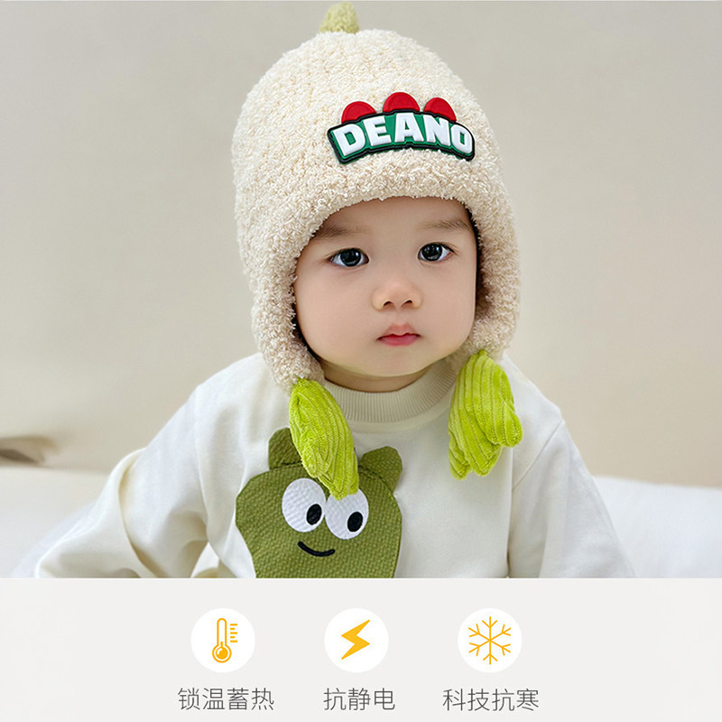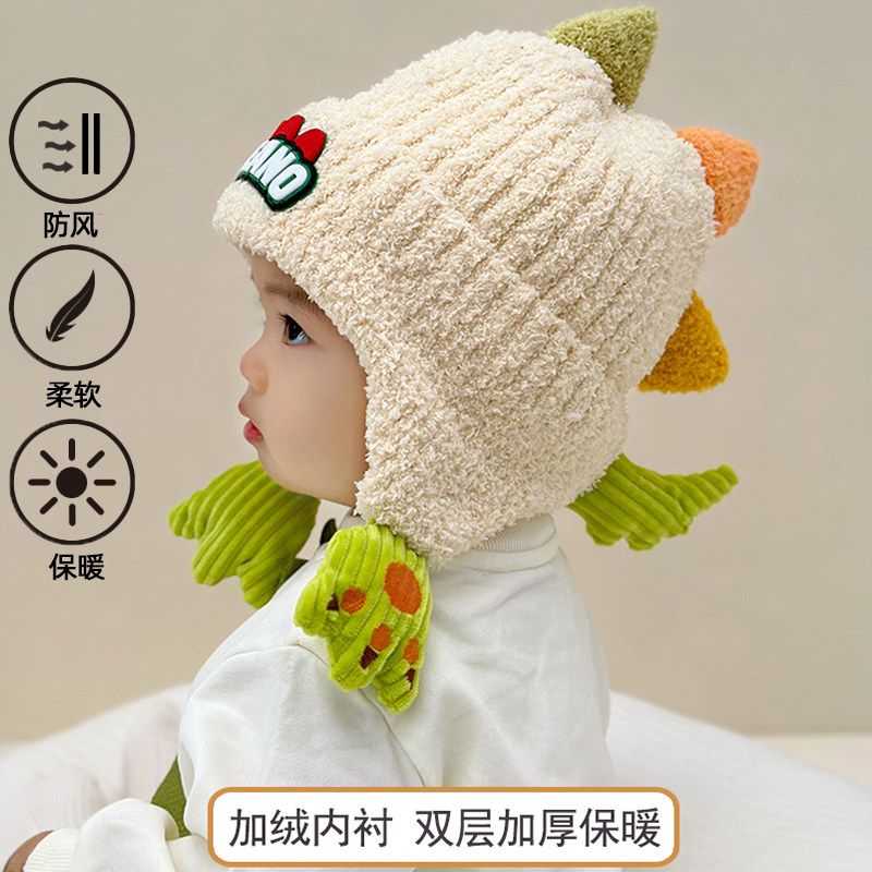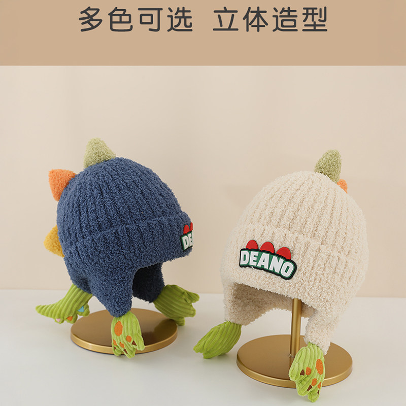 儿童帽子秋冬季护耳加厚可爱加绒恐龙男女宝宝保暖针织毛绒毛线帽