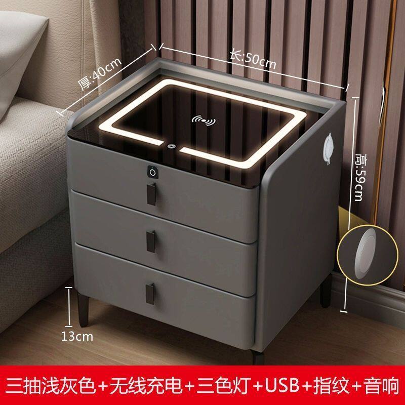 a智能实木床头柜卧室家用轻奢简约无线充带多功能三层床边柜整装