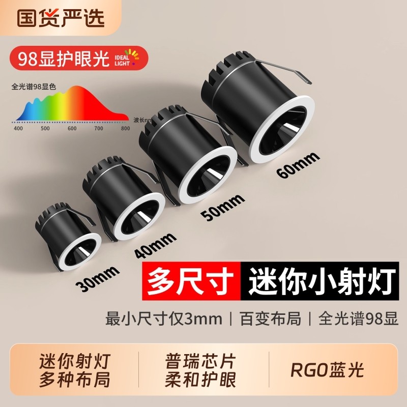 迷你小射灯led嵌入式筒灯开孔5cm4公分30mm6厘米小孔径酒柜展柜灯