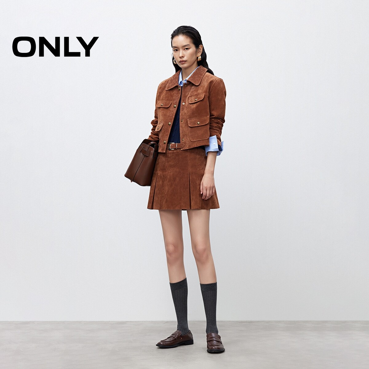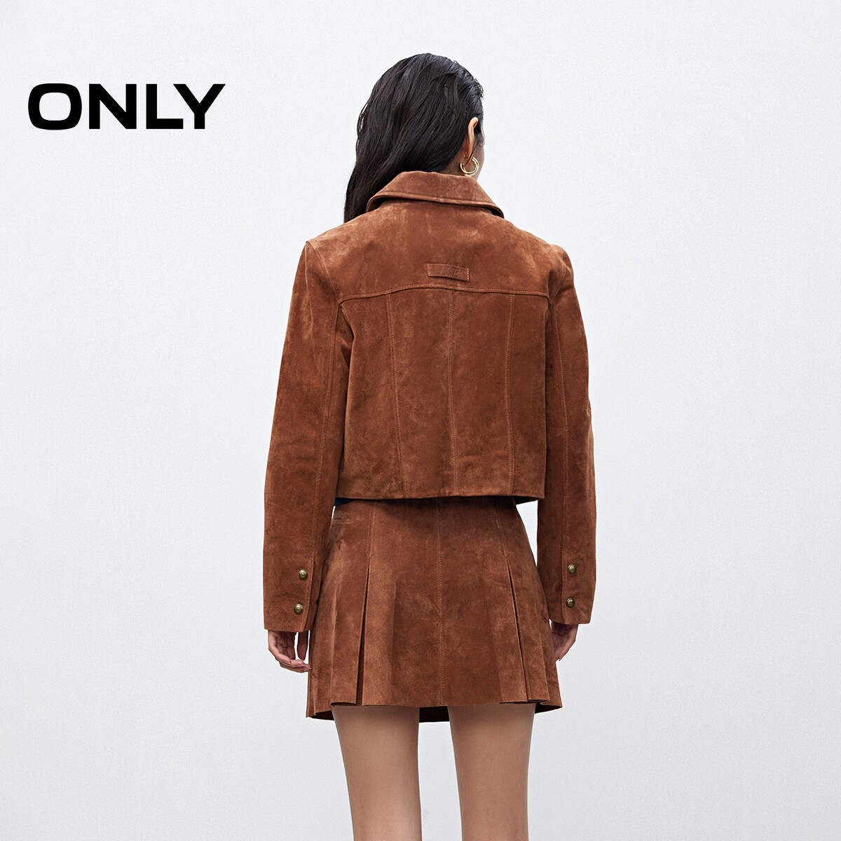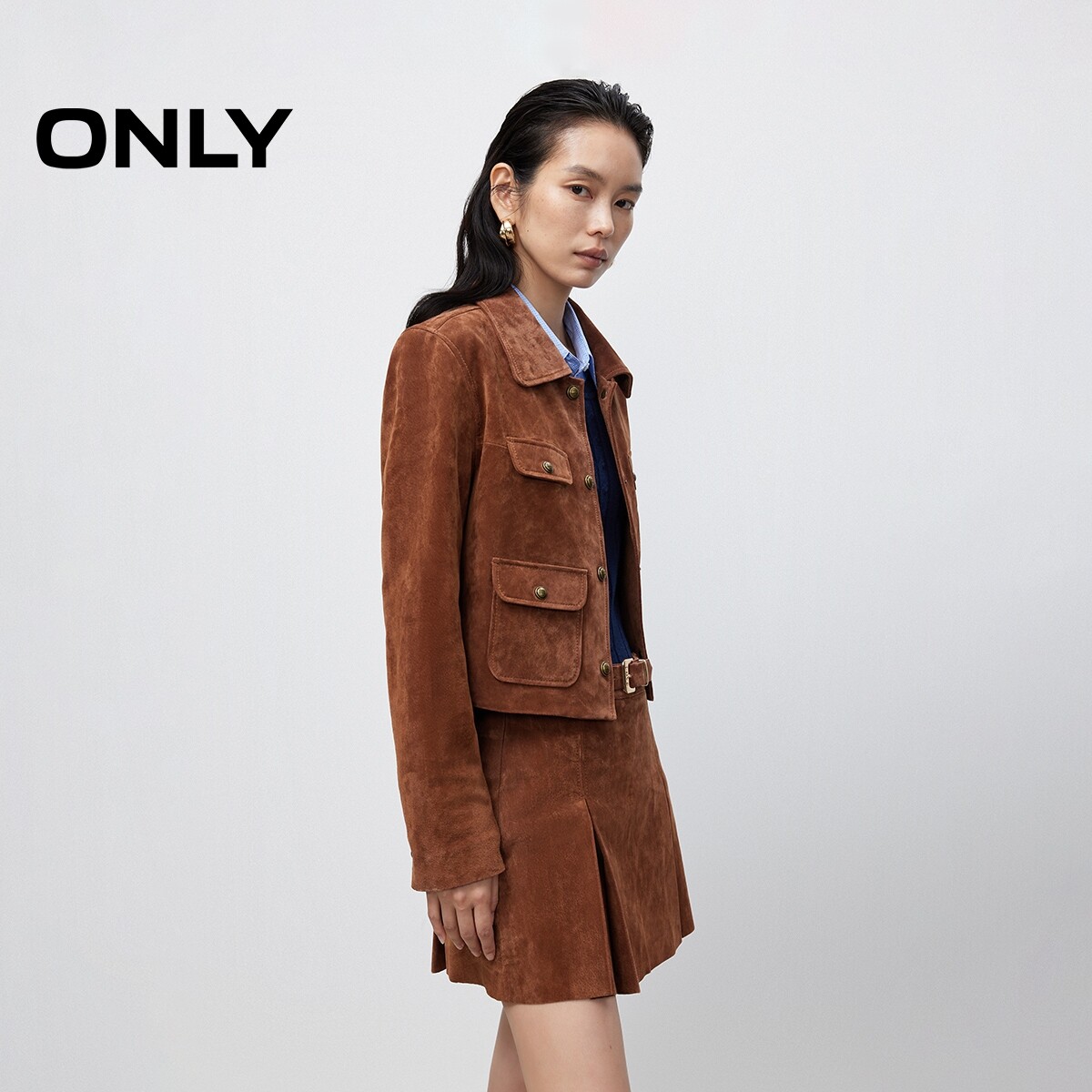 【ONLY奥莱】春季新款琥珀流光风层次感装饰盖袋复古皮衣外套女