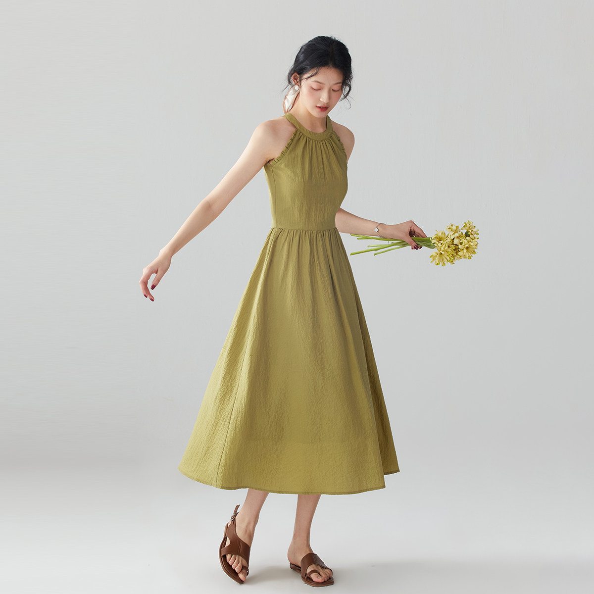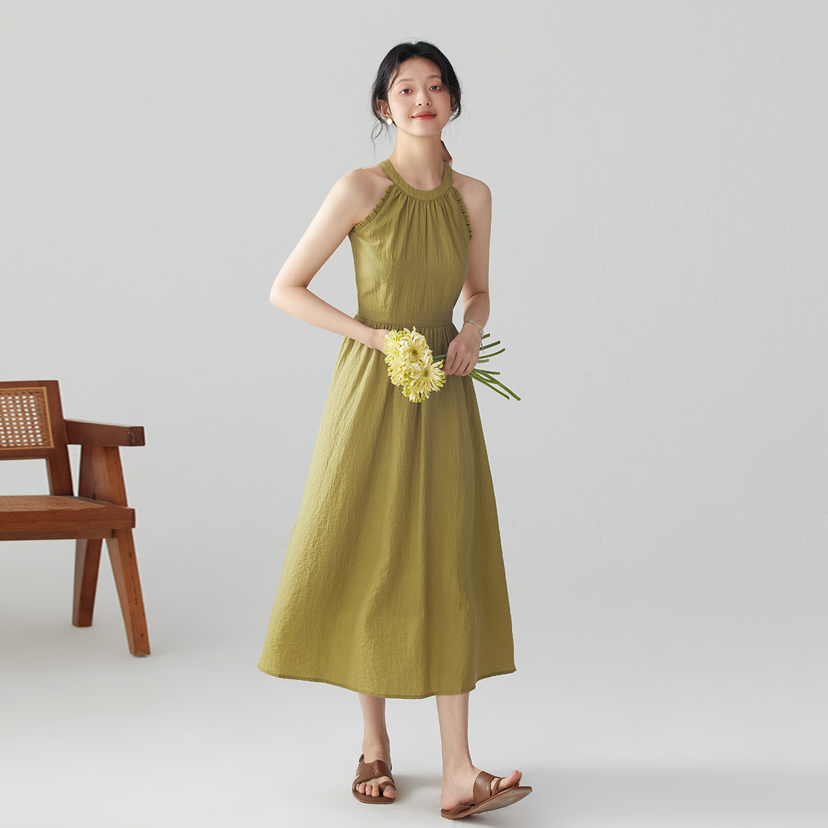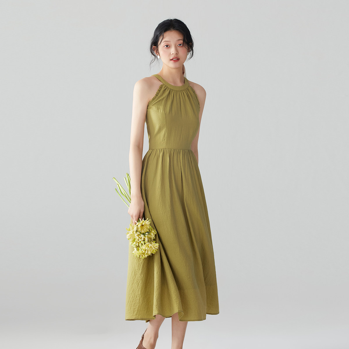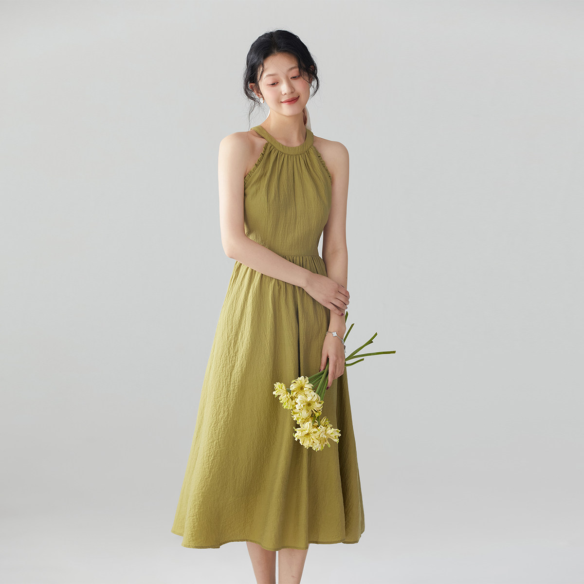 one more法式挂脖连衣裙女2026夏季新款高级感收腰裙三亚度假裙子
