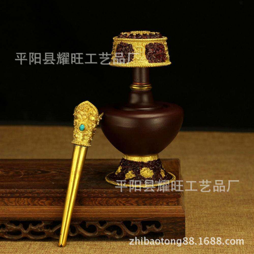 纯铜鎏金贲巴壶奔巴壶 净水壶文巴壶 纯铜 灌顶法事盛水洒净