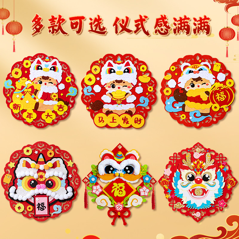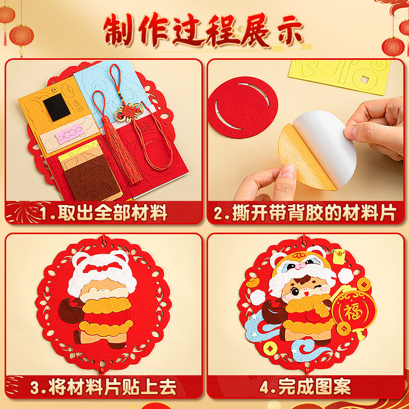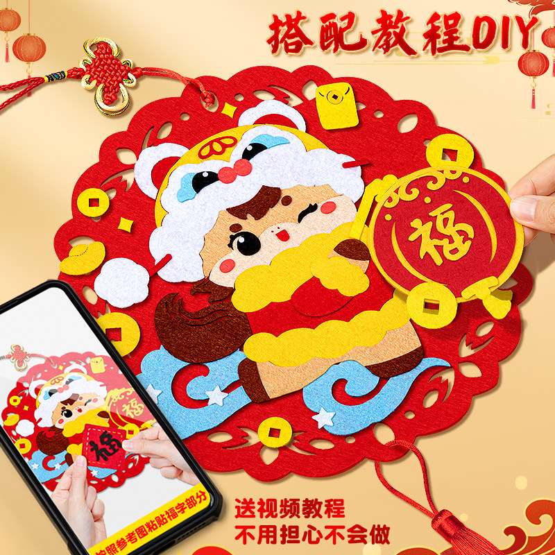 2026新年春节手工diy材料幼儿园儿童福字毛毡粘贴画新款蛇年贺年喜庆装饰品制作不织布材料包全套工具
