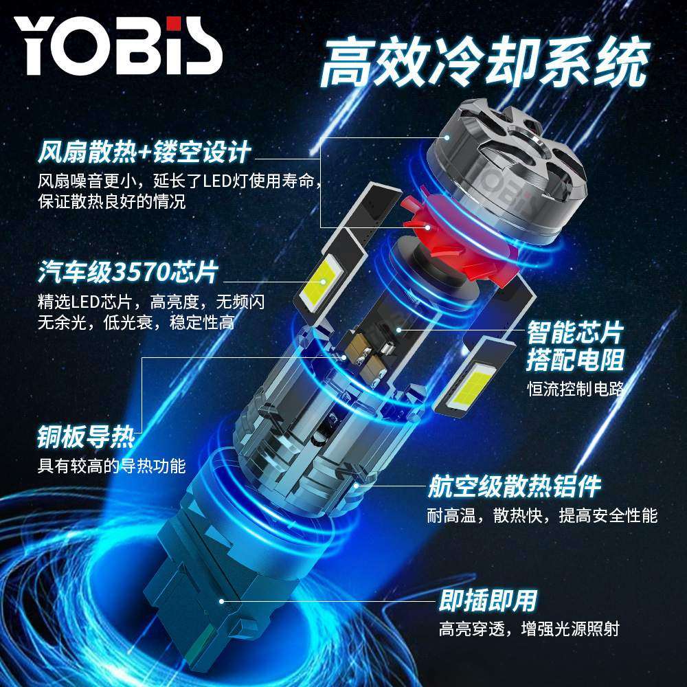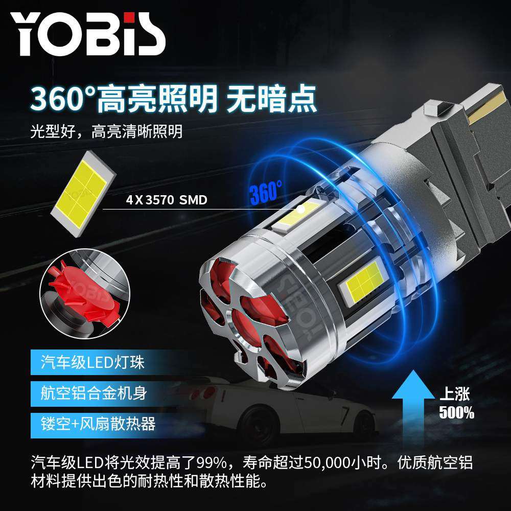 YoBis跨境汽车T20LED转向灯1156-3570-4带风扇高流明26W刹车灯