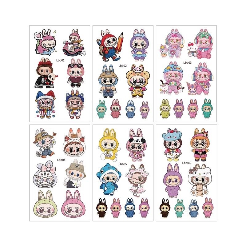 拉布布纹身贴闪粉Labubu脸贴纸可爱卡通儿童无毒可洗防水节日礼物