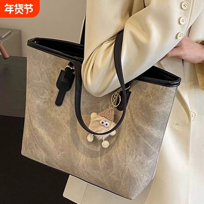 包秋冬新款大学生通勤时尚休闲单肩包高级感大容量手提包灰色分层