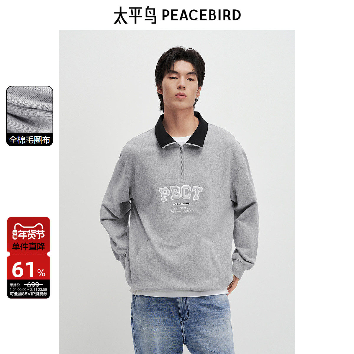 太平鸟男装 韩版半拉链开襟卫衣青年休闲潮流撞色字母刺绣上衣