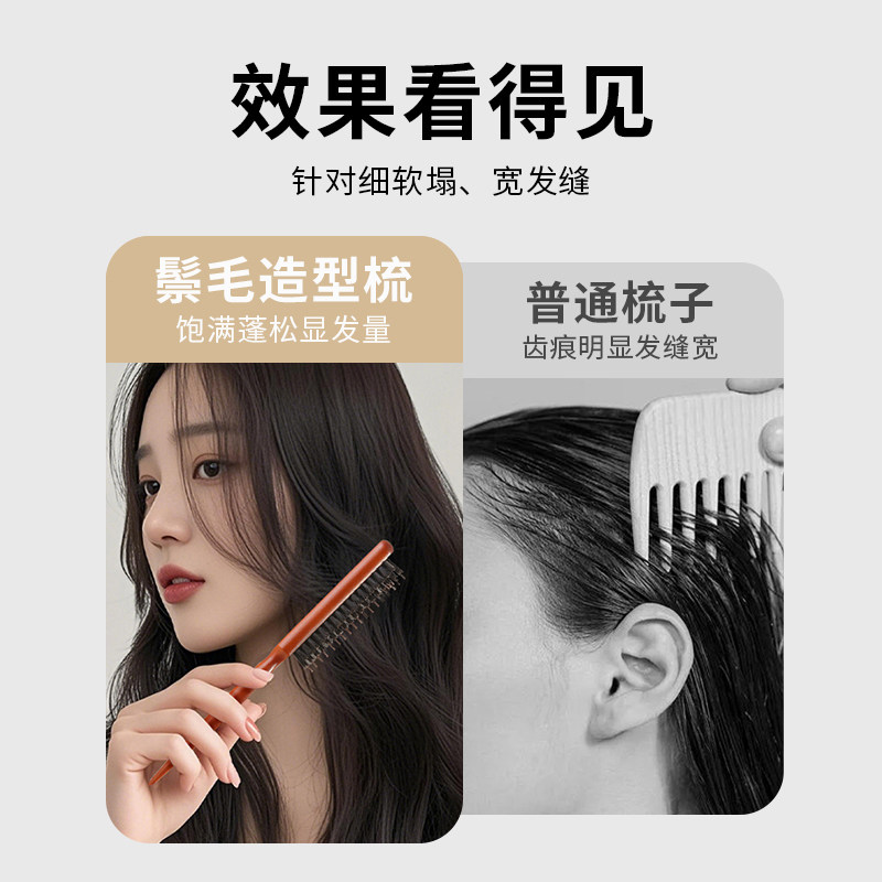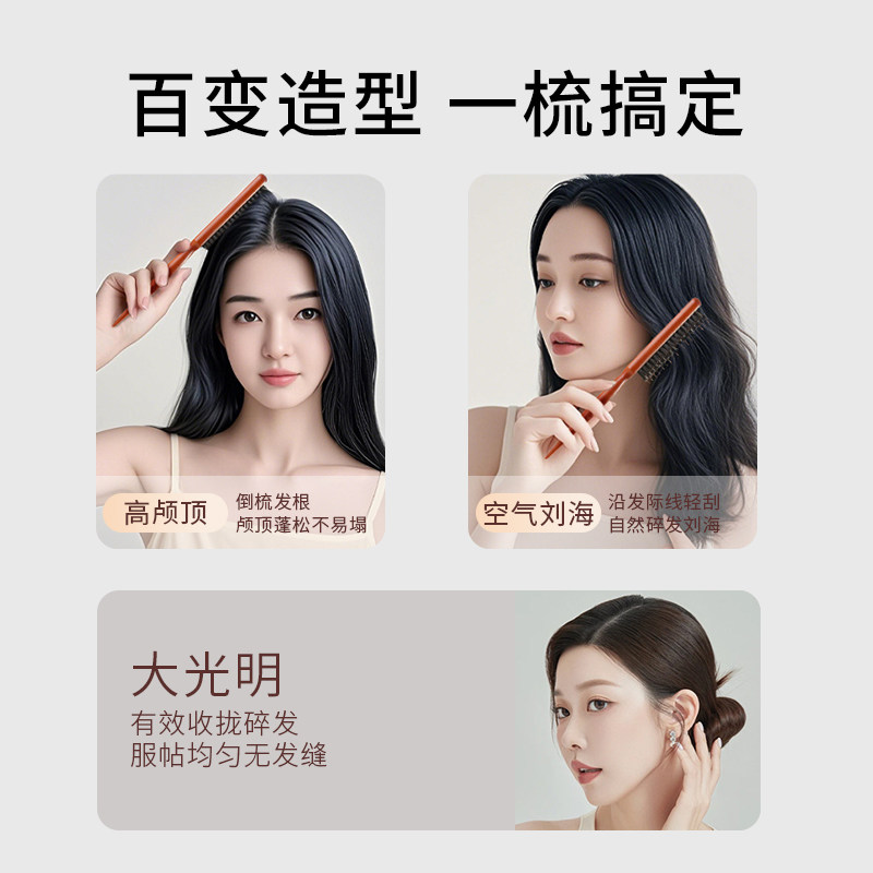 猪鬃毛窄齿梳子蓬松头发高颅顶三排齿打毛美发头包脸发缝盘发专用