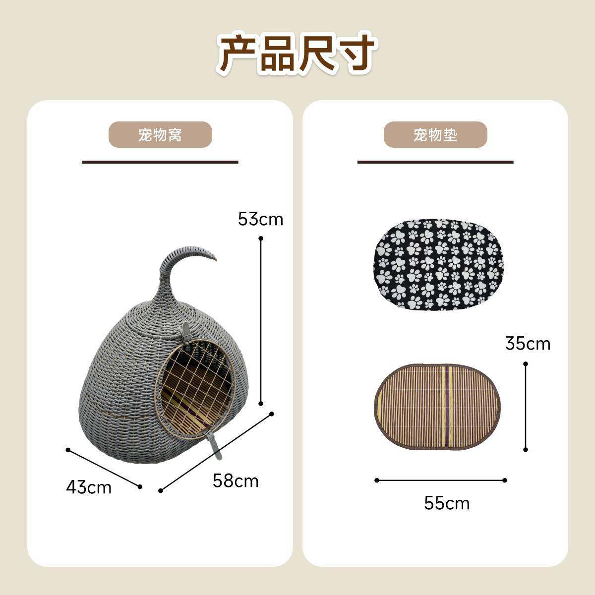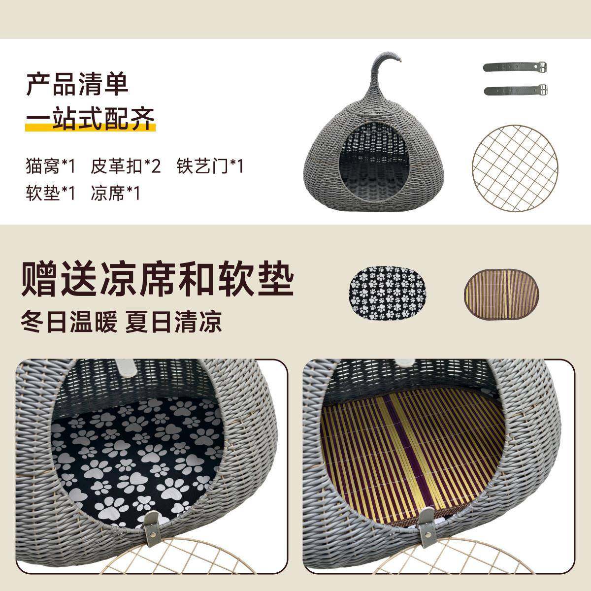 猫窝宠物透气四藤编猫猫笼床网红圆形半封闭式吊篮新品手工编织篮