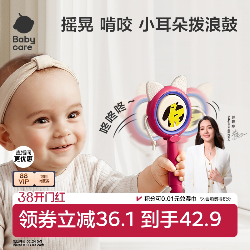 babycare婴儿拨浪鼓可啃咬新生儿手摇鼓硅胶摇铃益智宝宝儿童玩具