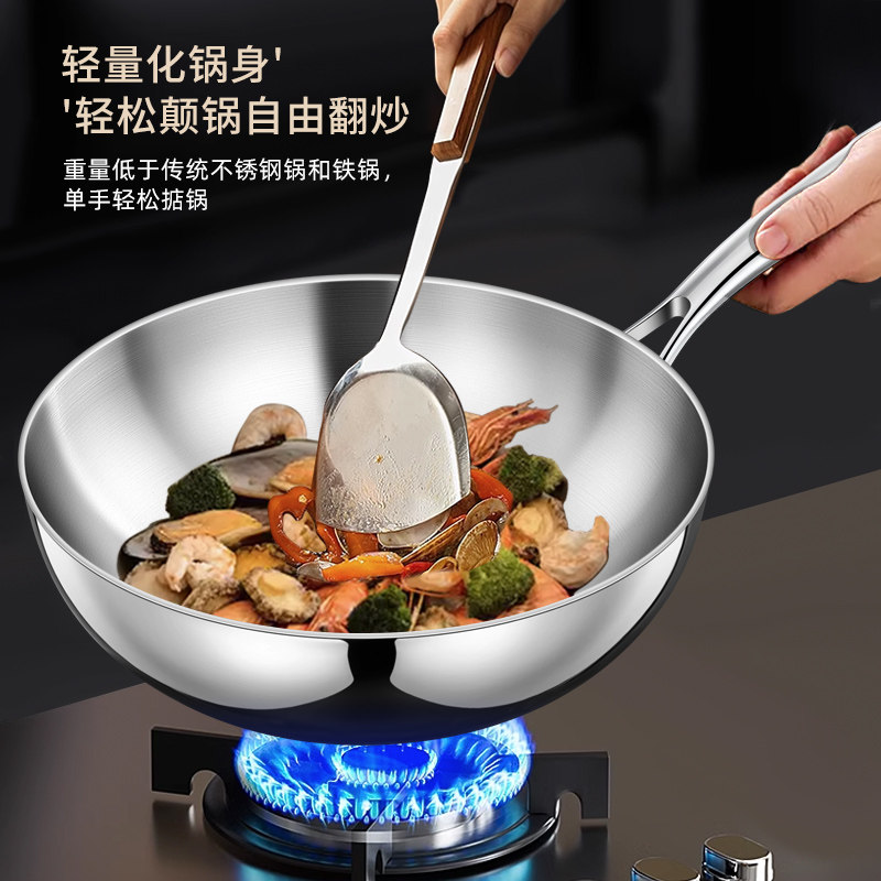 无涂层小炒锅不锈钢家用316食品级平底电磁炉不粘锅炒菜锅两人用
