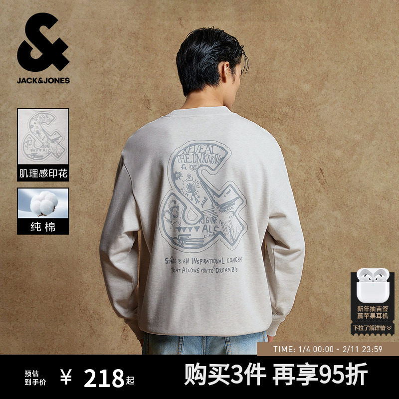 杰克琼斯男装2025年秋季新款纯棉LOGO印花卫衣外套宽松圆领打底衫