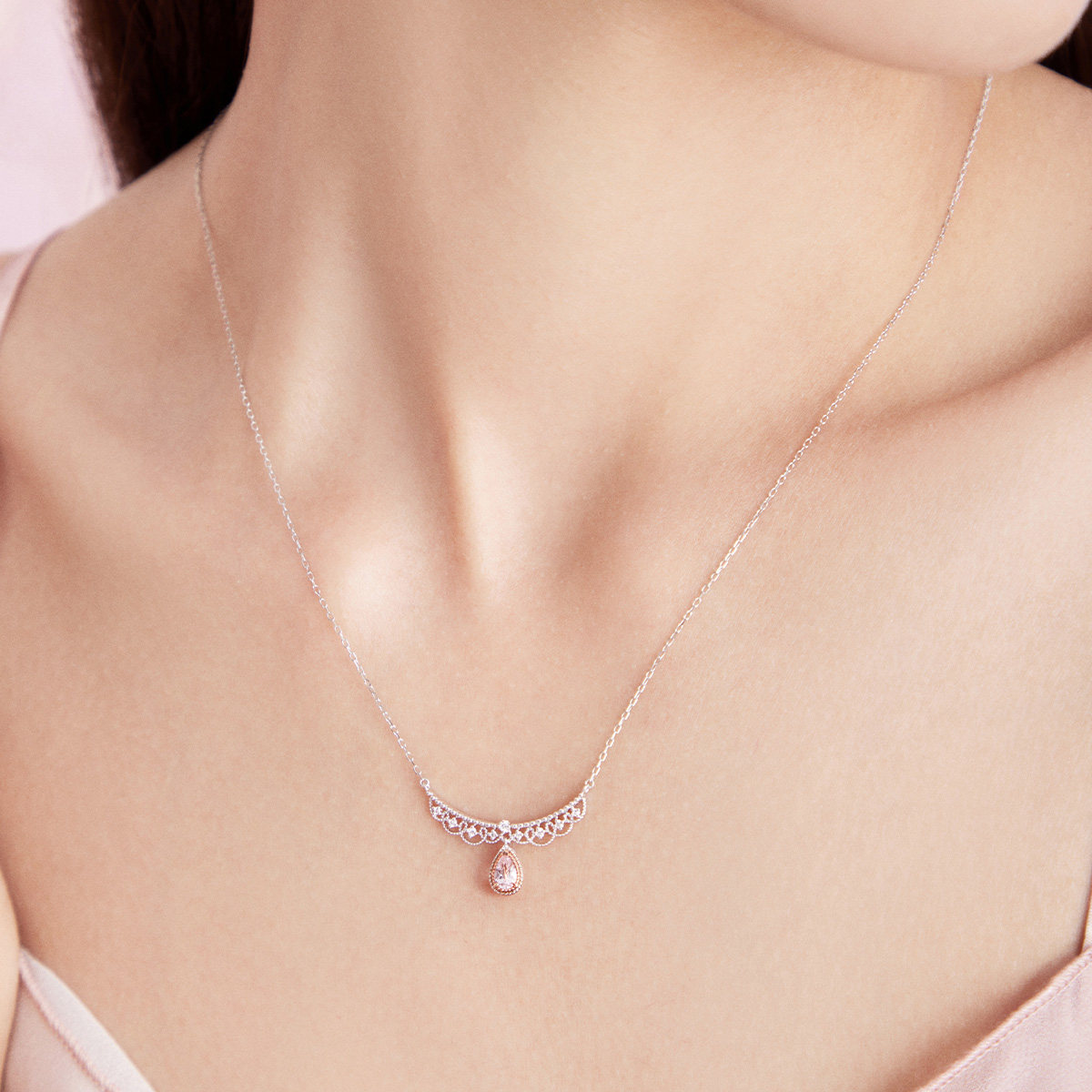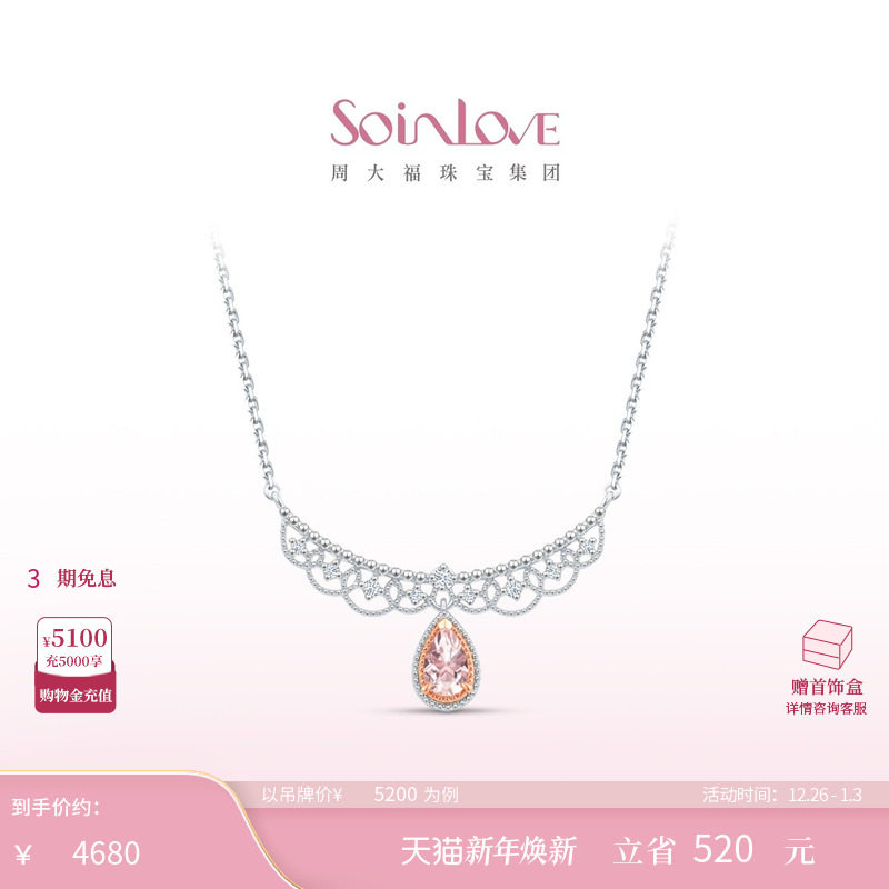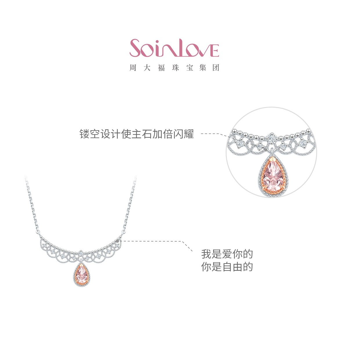 周大福SOINLOVE 月桂之心18K金摩根石钻石项链锁骨链生日礼物