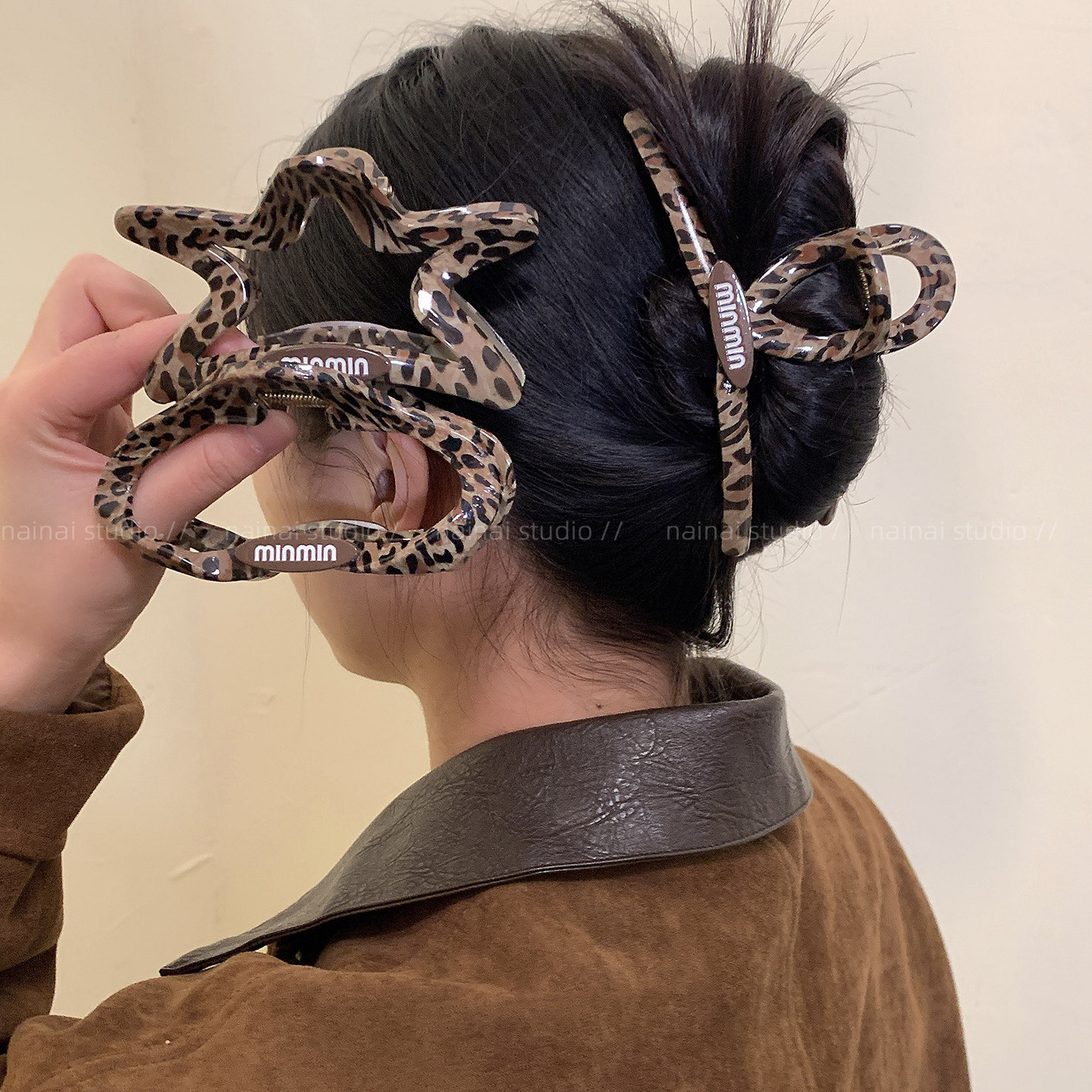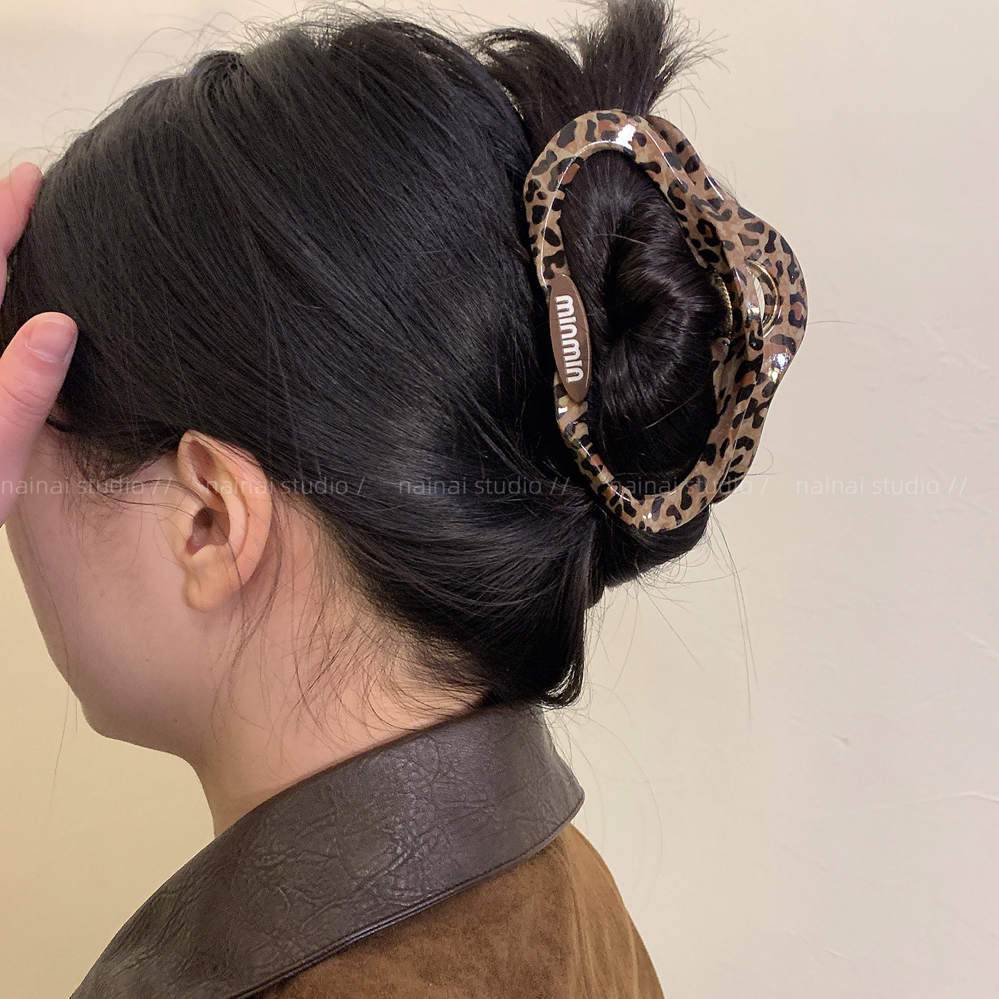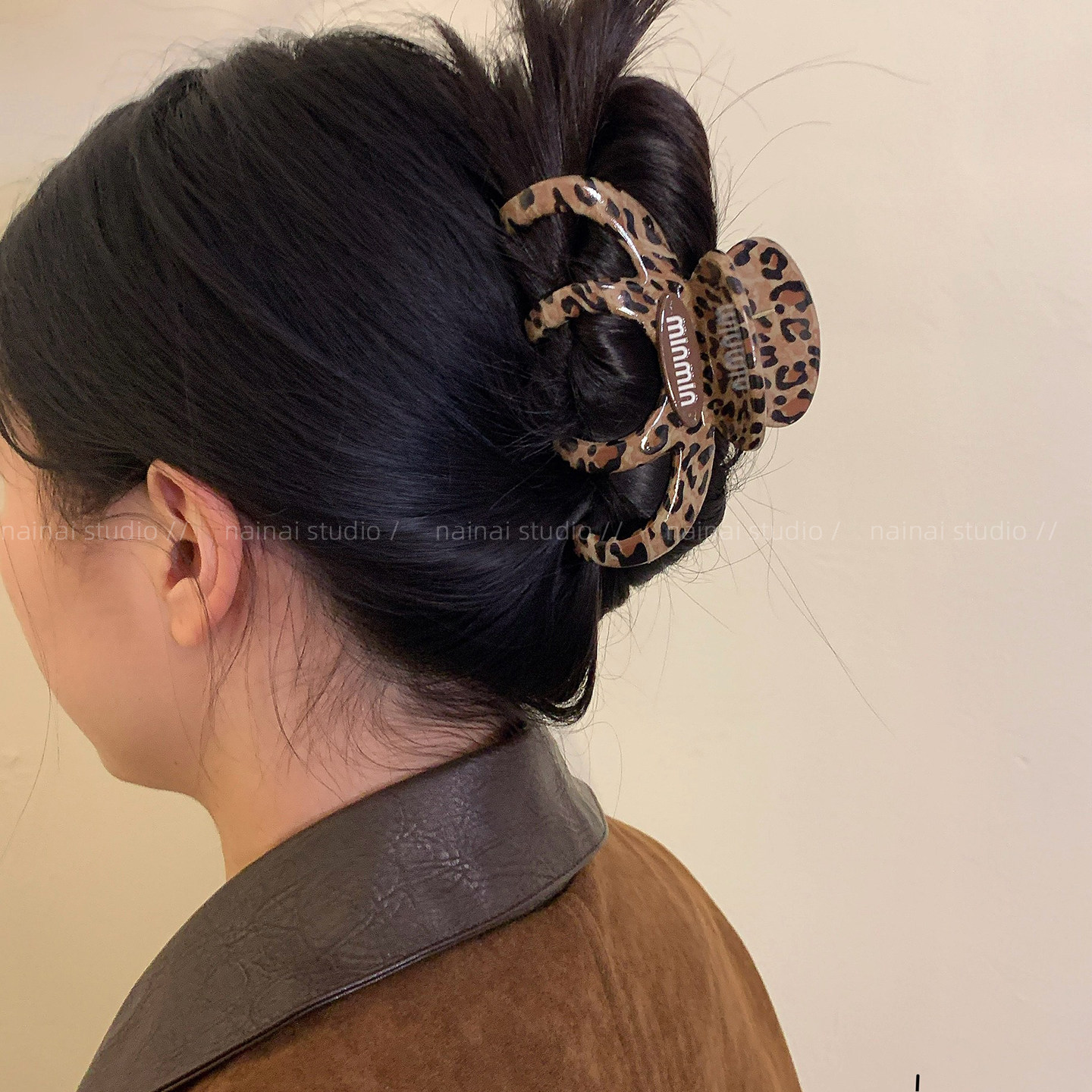 豹纹抓夹~甜酷辣妹字母小众设计高级感后脑勺盘发鲨鱼夹发夹发饰