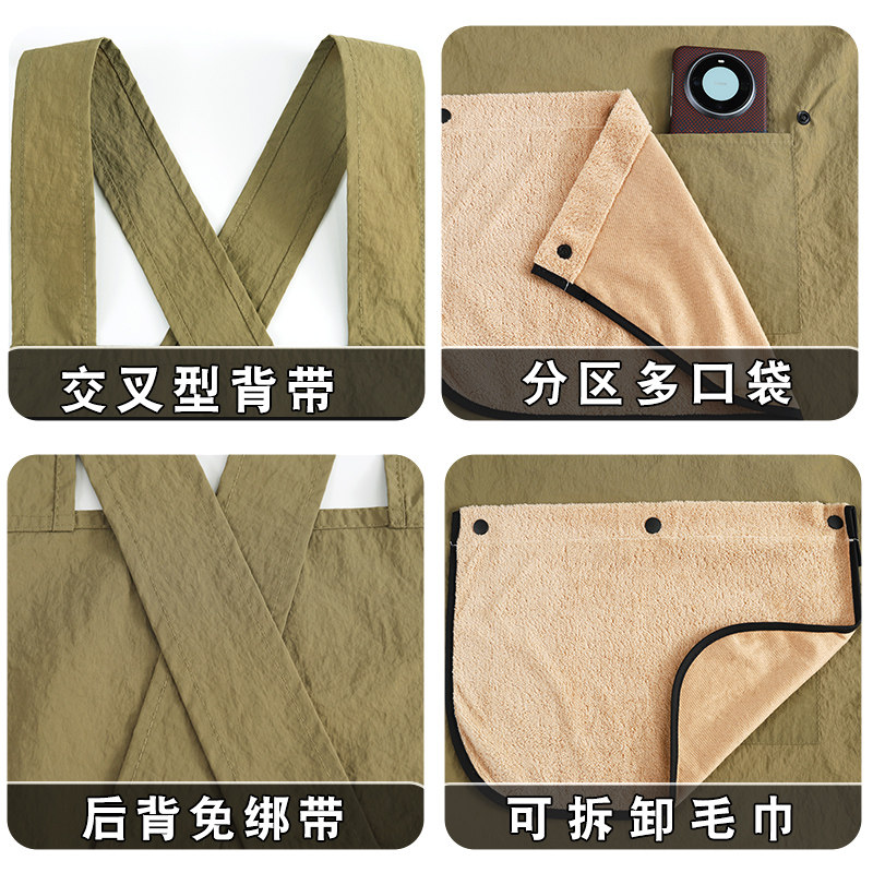 围腰长袖交叉带围裙防水罩衣耐污耐磨工作服定制logo印字上班男女