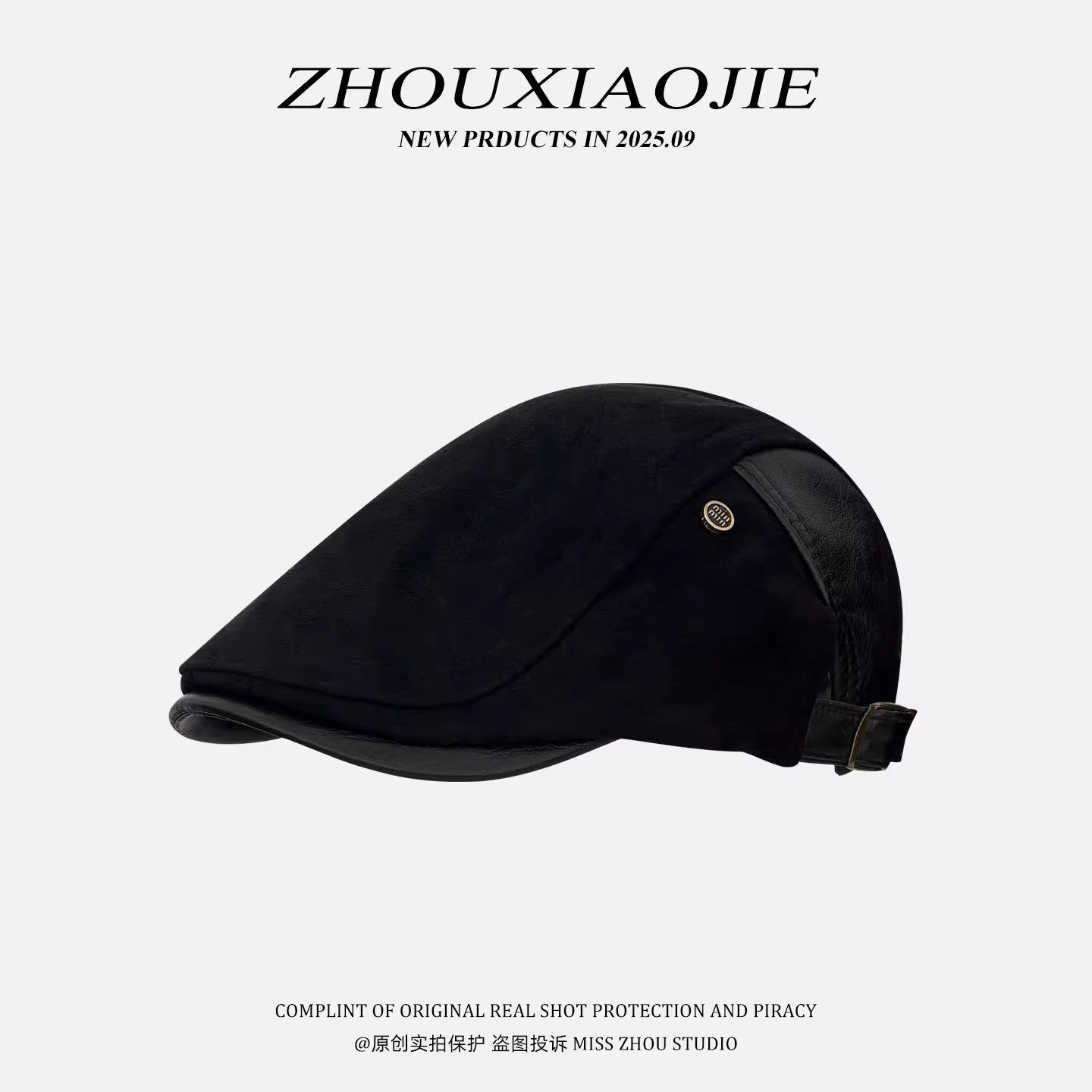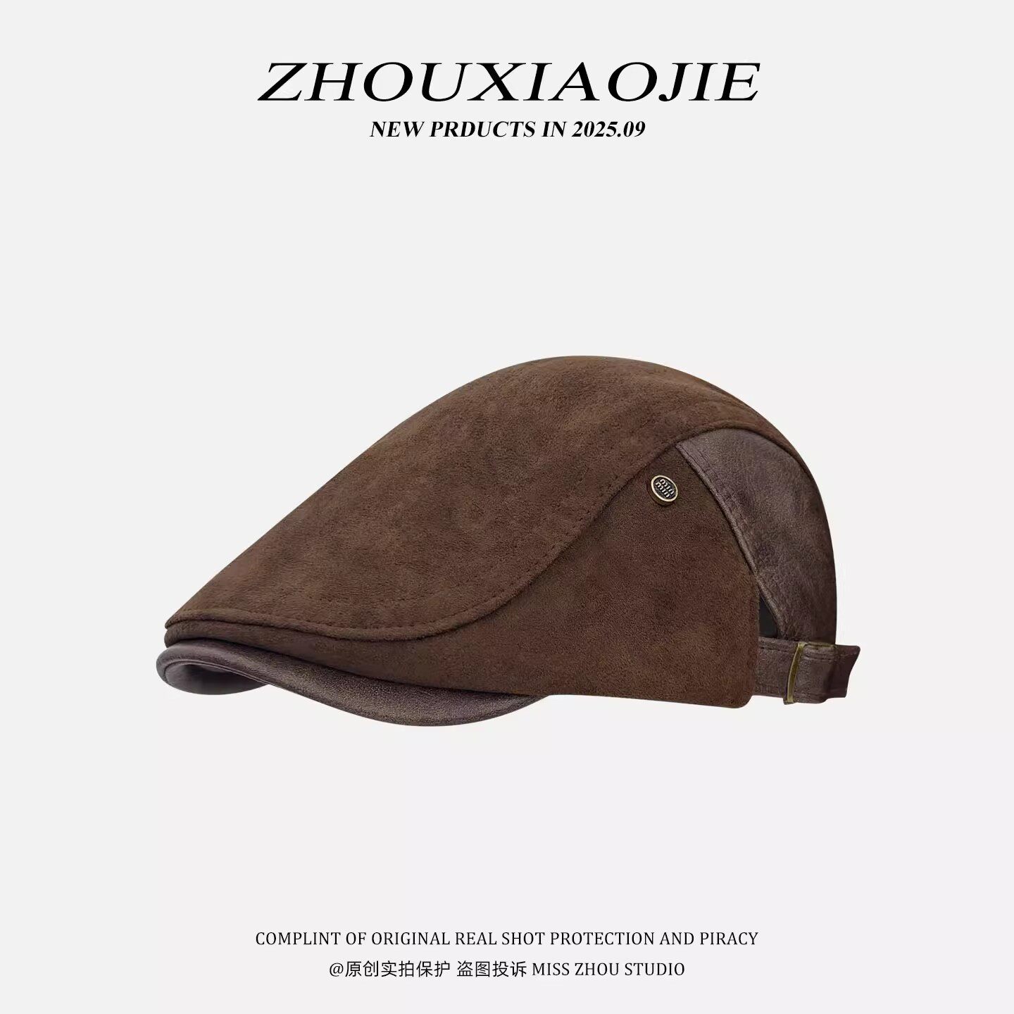 美式复古老钱风秋季皮革麂皮绒前进帽气质文艺反戴百搭鸭舌帽子女