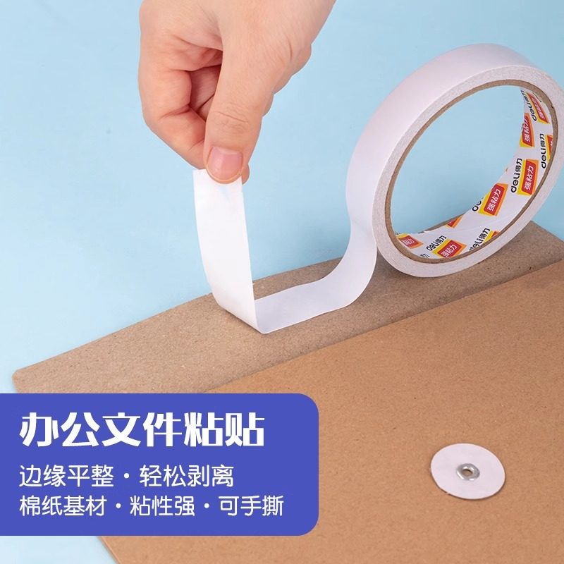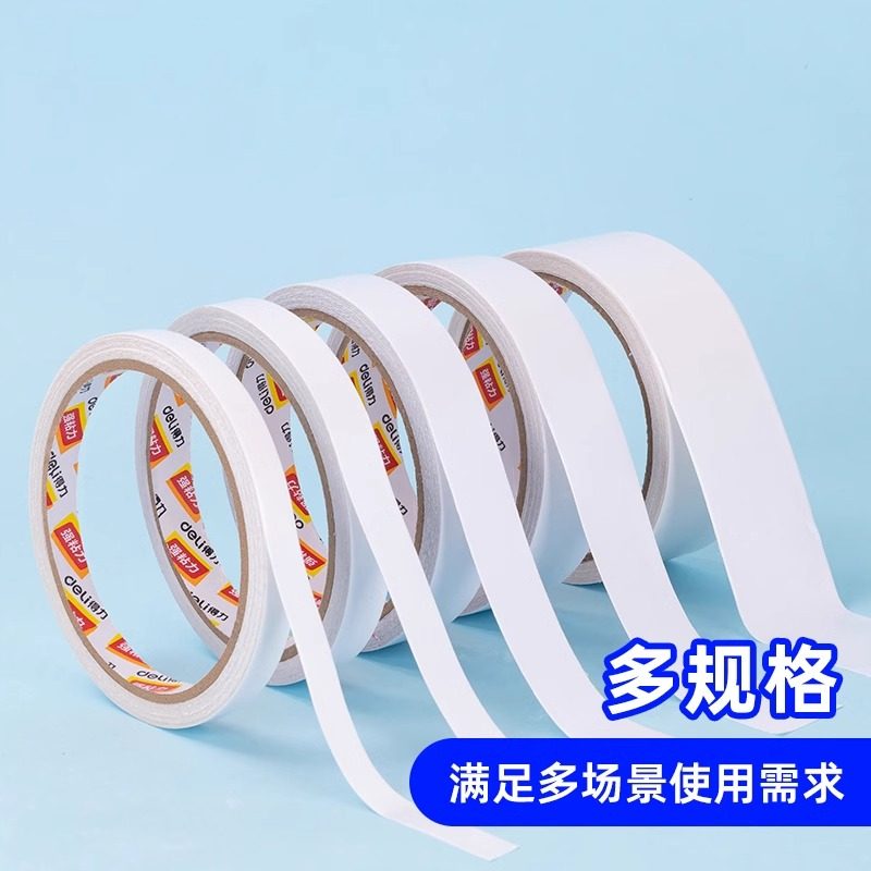 得力 双面胶手工学生用儿童普通型棉紙胶双面贴胶条 两面胶带 强力高粘度超薄款透明固定不痕可手撕批发