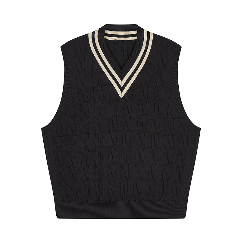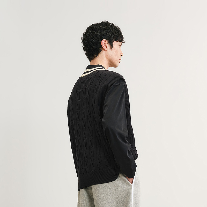 速写男装早春新款毛衫背心V领马甲撞色复古学院风上衣休闲时尚