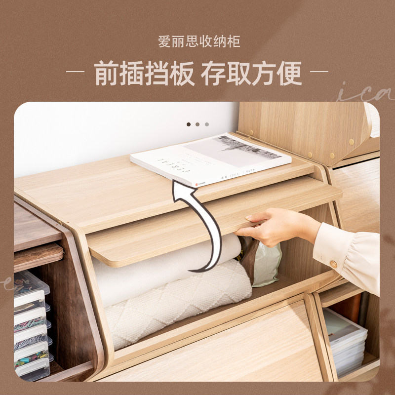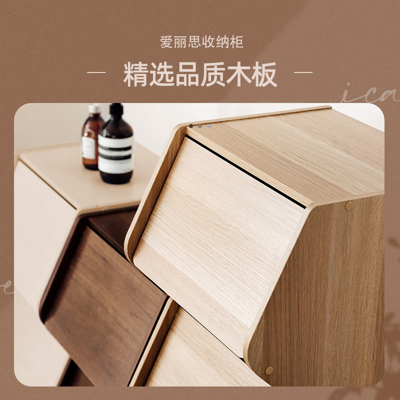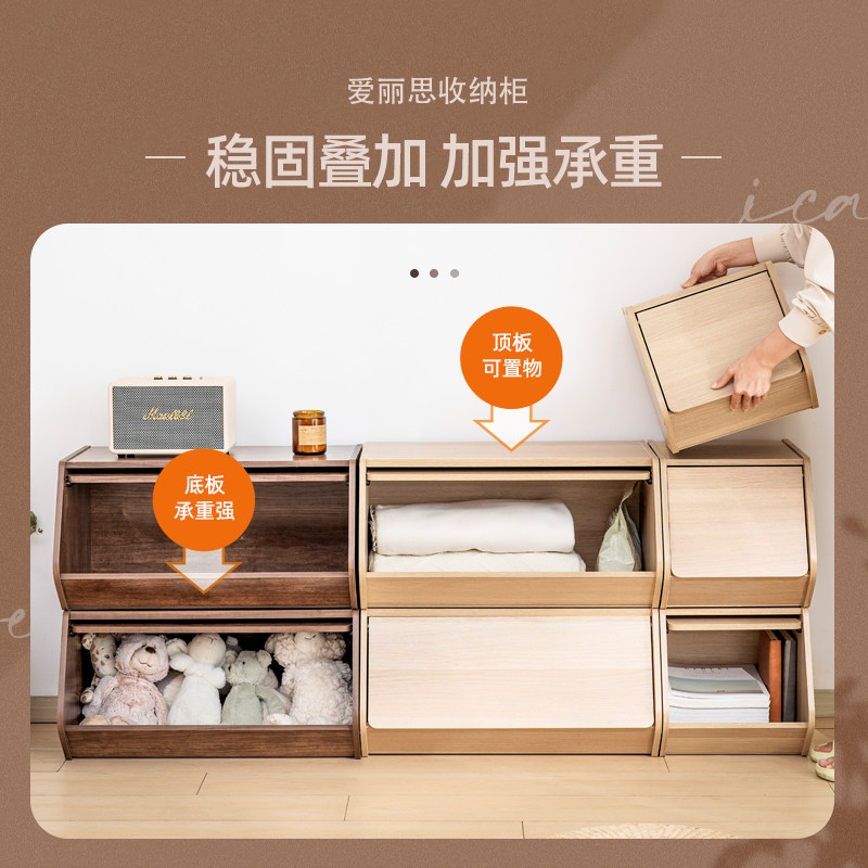 爱丽思木质收纳柜桌面玩具零食柜整理窄柜卧室书柜储物柜可叠加