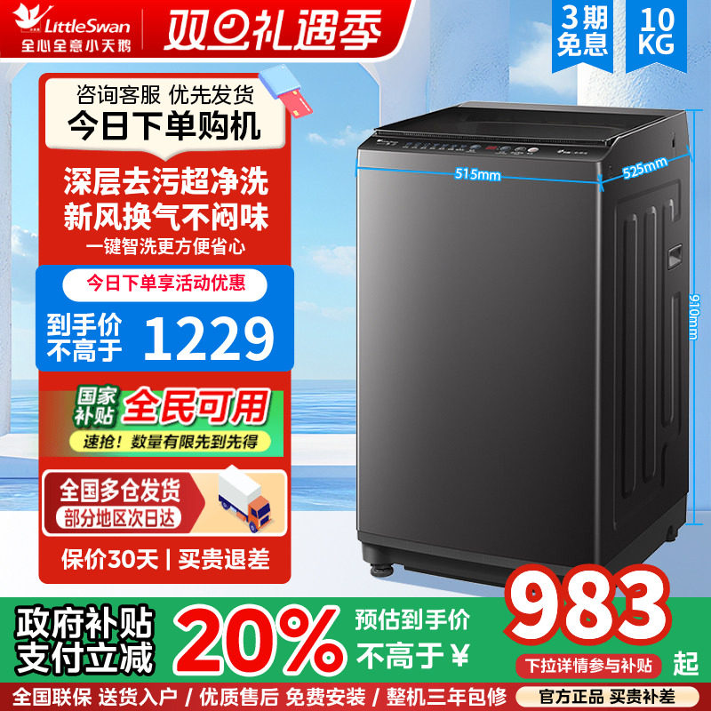 以旧换新补贴小天鹅洗衣机8/10/12KG全自动波轮出租家用大容量