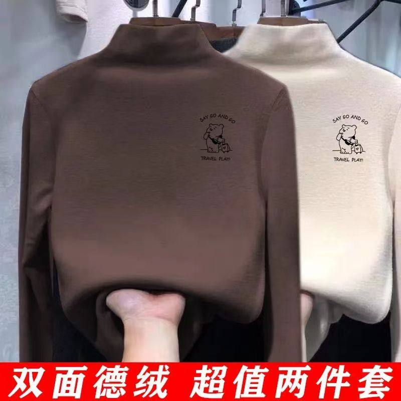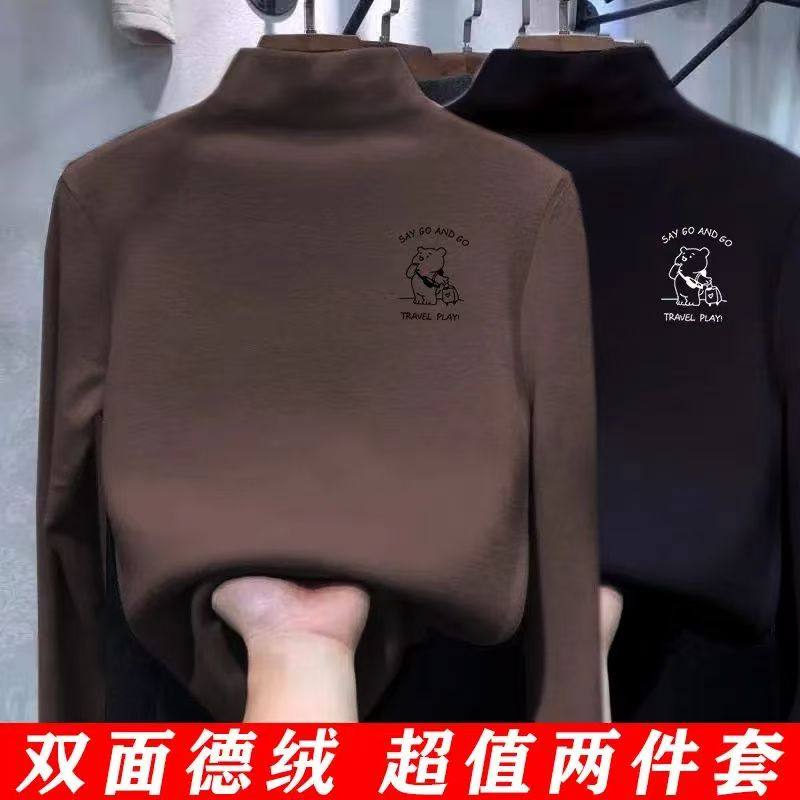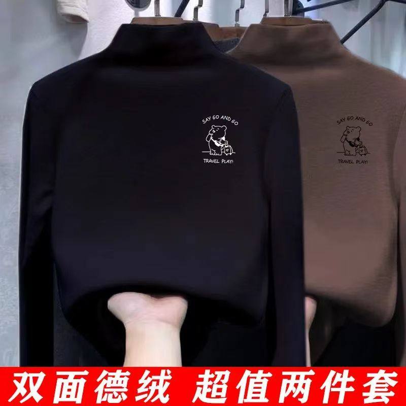 中大童秋冬季男女童德绒打底内搭长袖T恤宝宝保暖半高领儿童上衣E