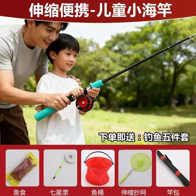 儿童钓鱼竿亲子休闲玩具便宜迷你小鱼竿全套一套小物钓竿抓鱼神器