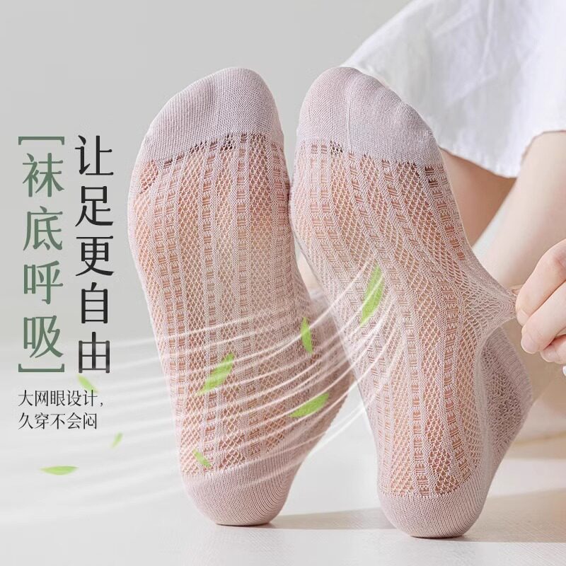 禾素时代船袜男士防臭袜网眼不掉跟透气棉袜女抗菌袜夏秋薄款袜子