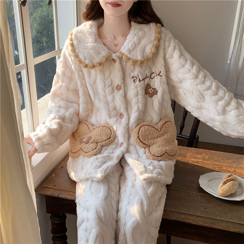 2025年冬款珊瑚绒睡衣女秋冬季加厚法兰绒加绒套装家居服春秋新款