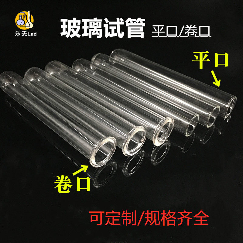 加厚玻璃试管卷边卷口试管鸡尾酒试管高硼硅圆底刻度试管实验室玻璃管透明高透明高硼硅材质化学实验室专用