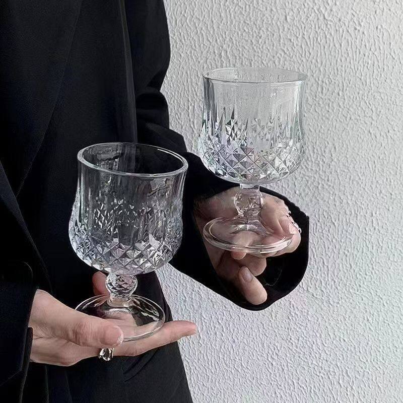 钻石酒杯浮雕高脚杯葡萄酒复古香槟高颜值威士忌鸡尾酒